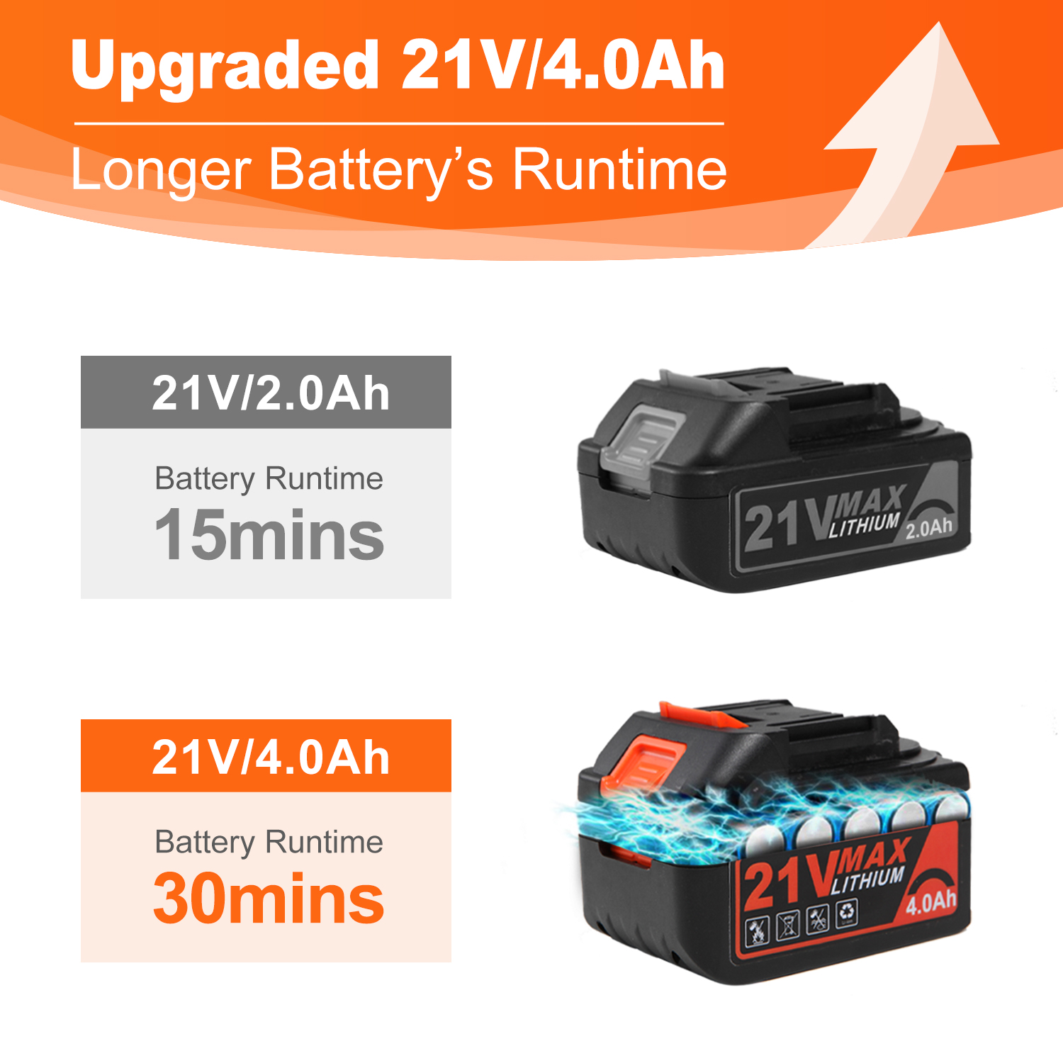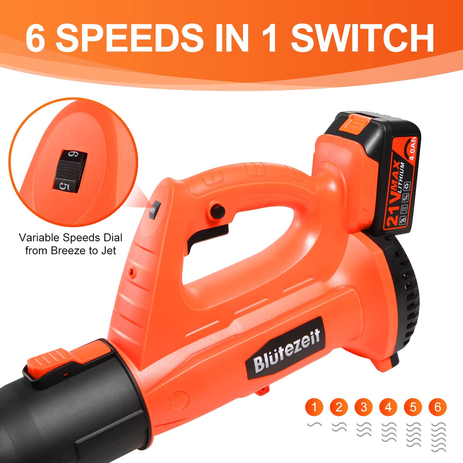 Blütezeit 21V Cordless Leaf Blower. 320CFM 150MPH Battery Powered (4.0Ah Battery & Charger) 6 Speed Adjustable. Lightweight