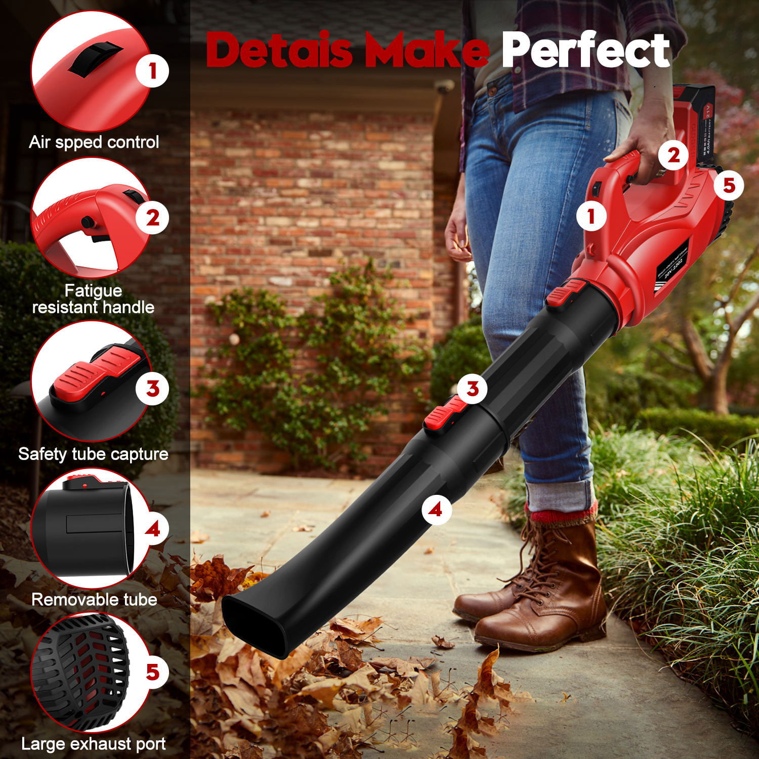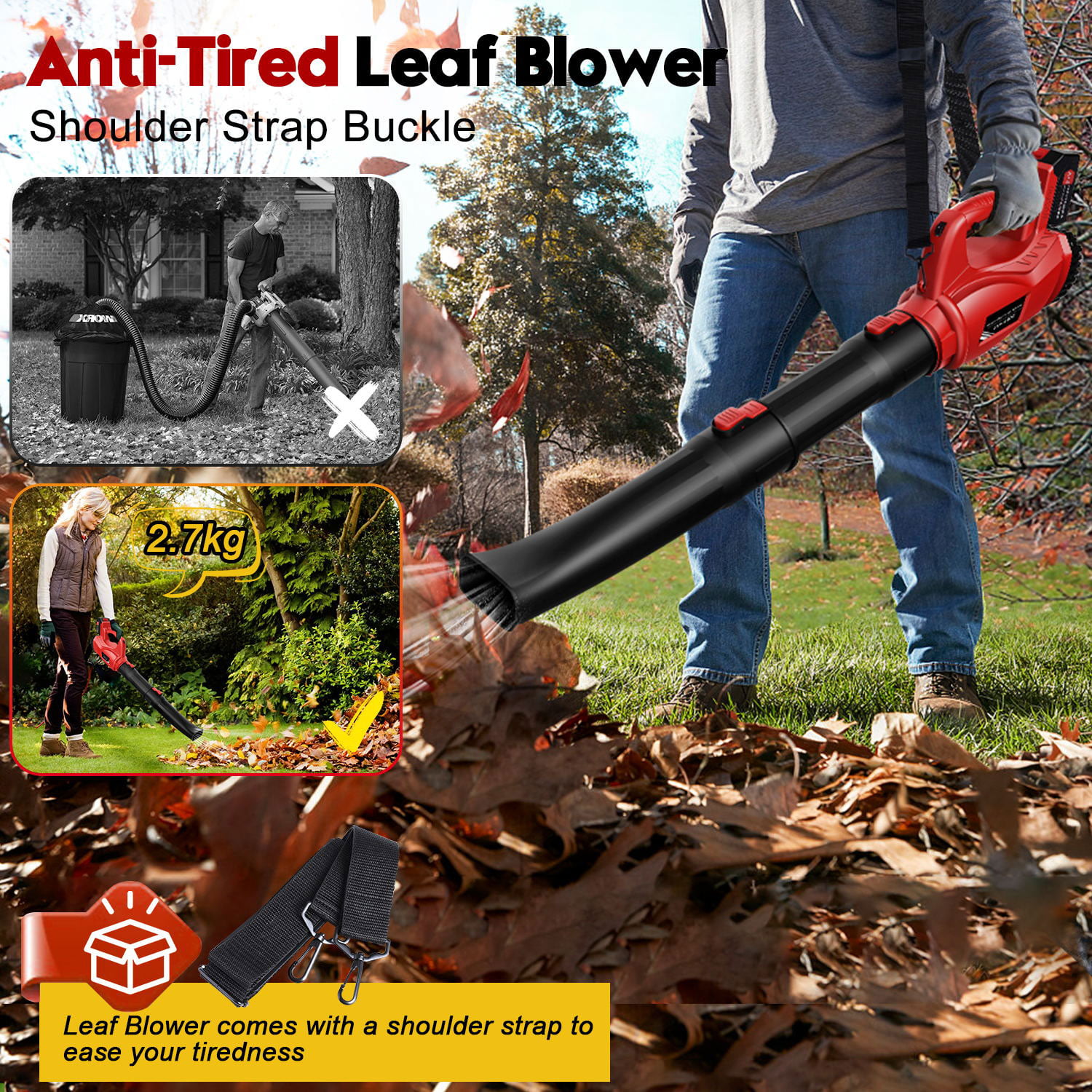 OUKANING Handheld 25.4CC 2 Stroke Leaf Blowers Backpack Gas Powered Snow Blowing Machine Leaf Dust Blowing Machine Air-Cooled