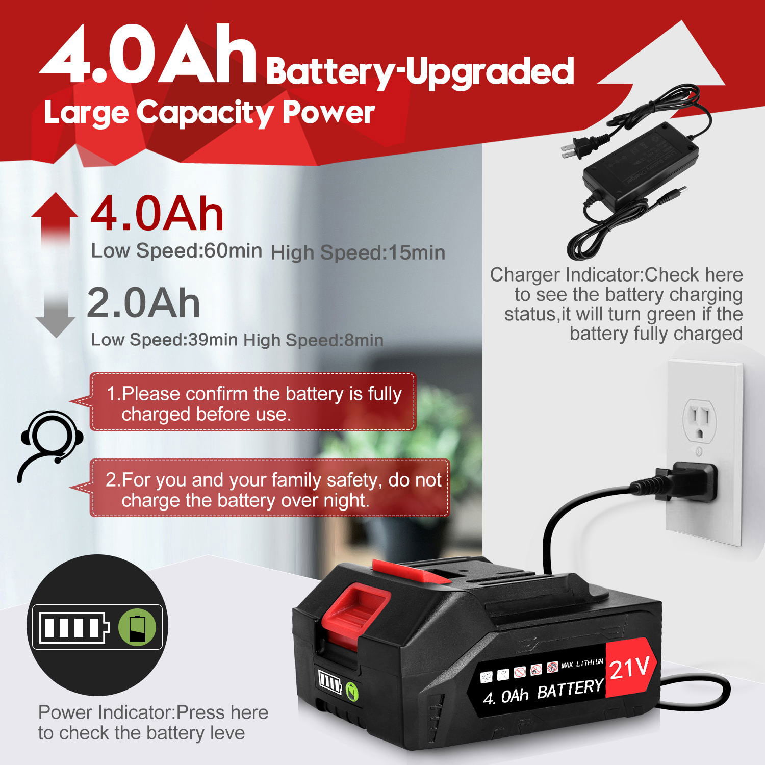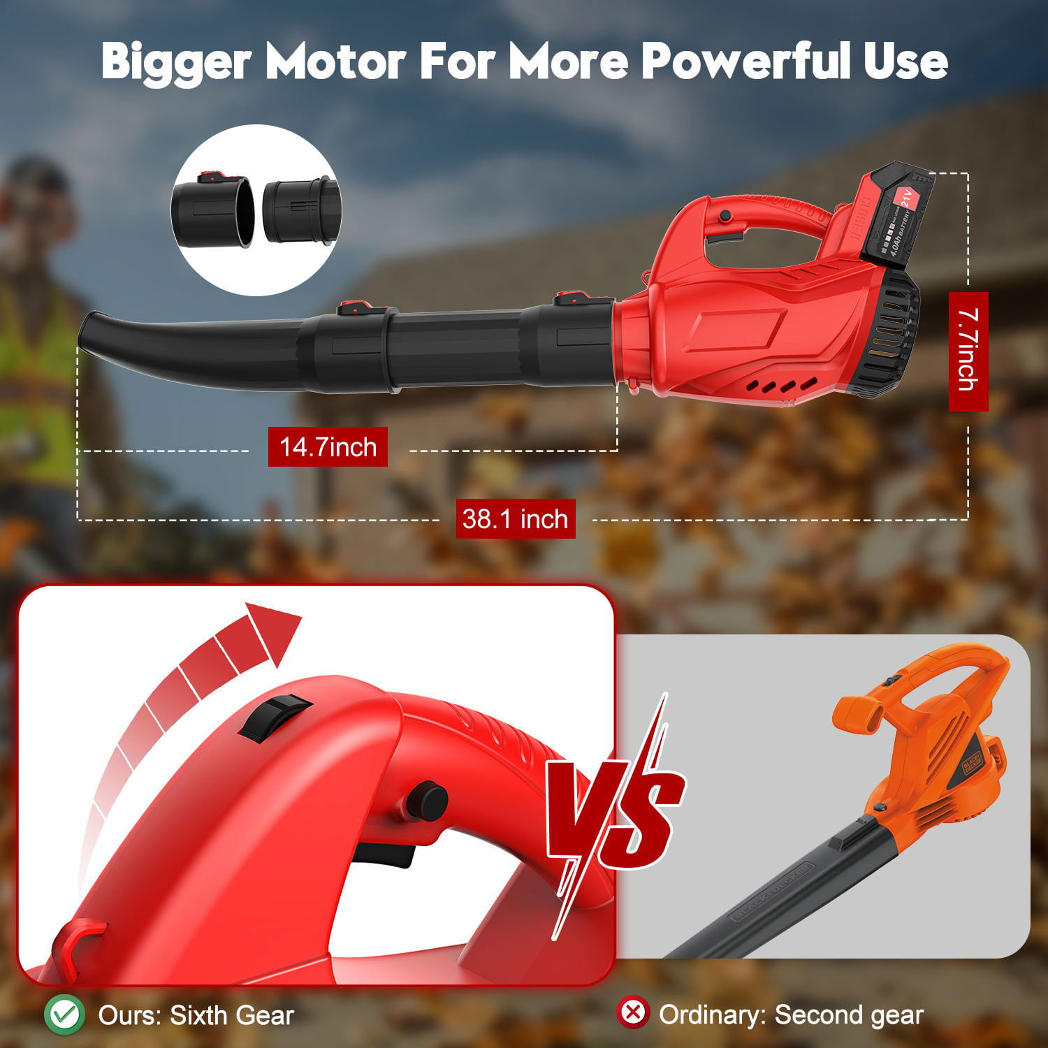 Cordless Leaf Blower. Tanbaby 21V 180MPH 320CFM with Battery and Charger