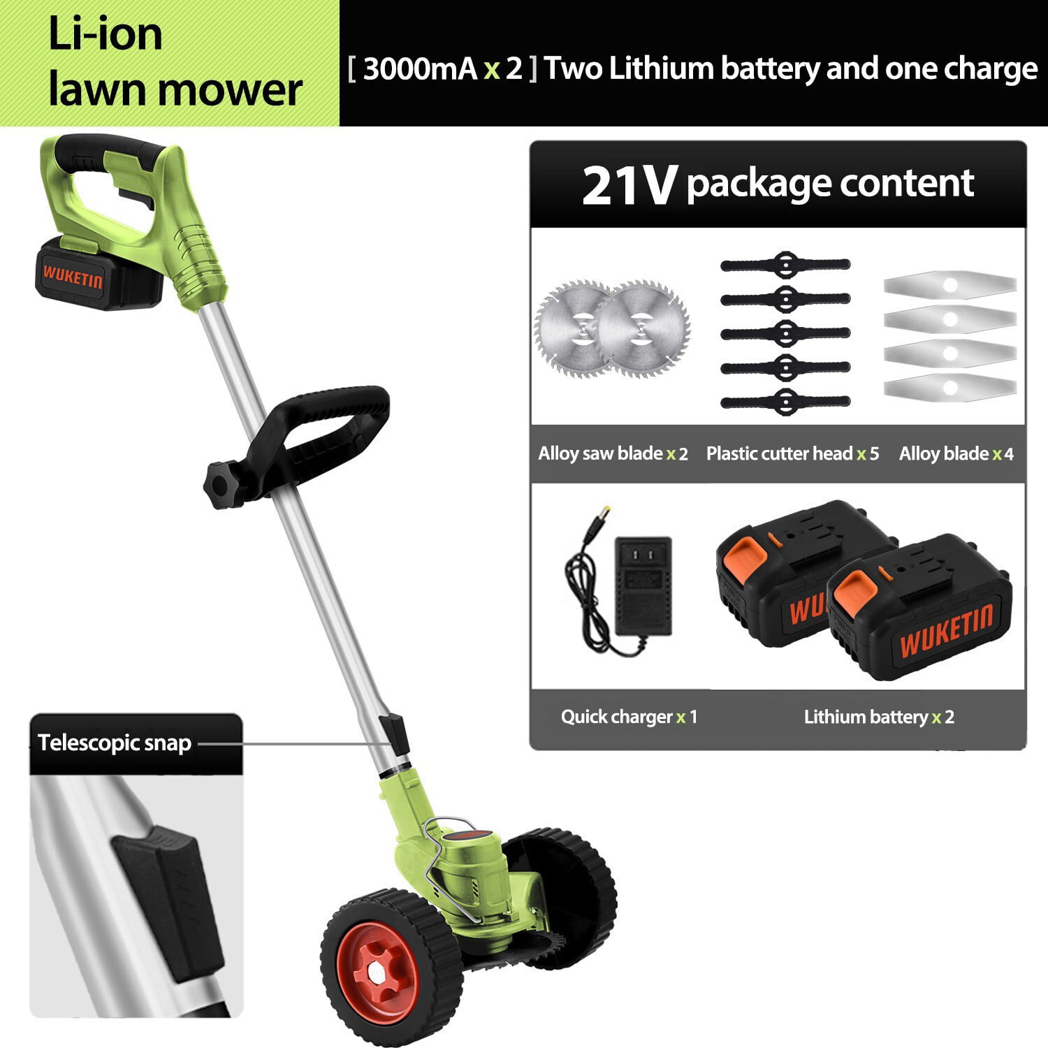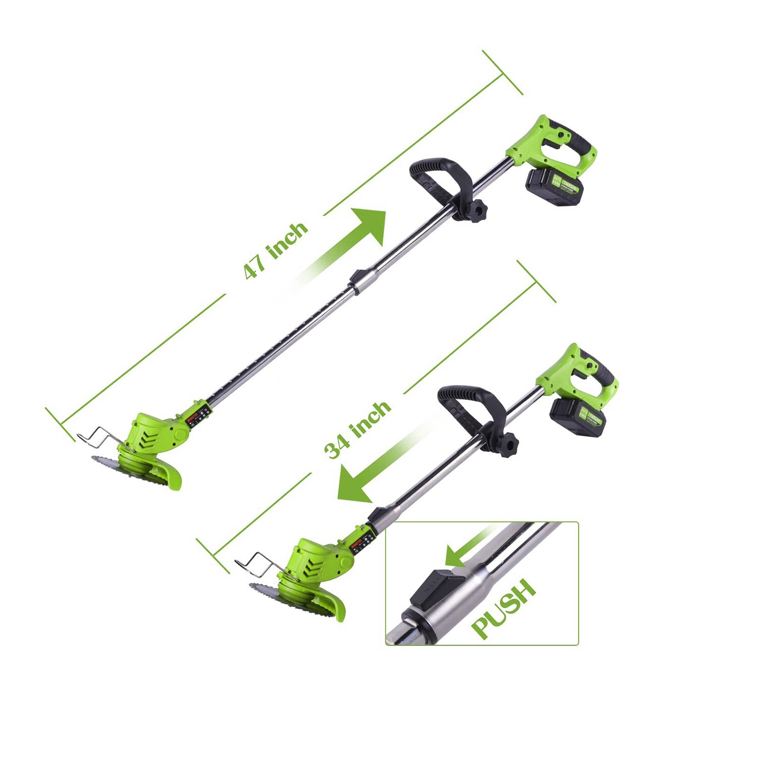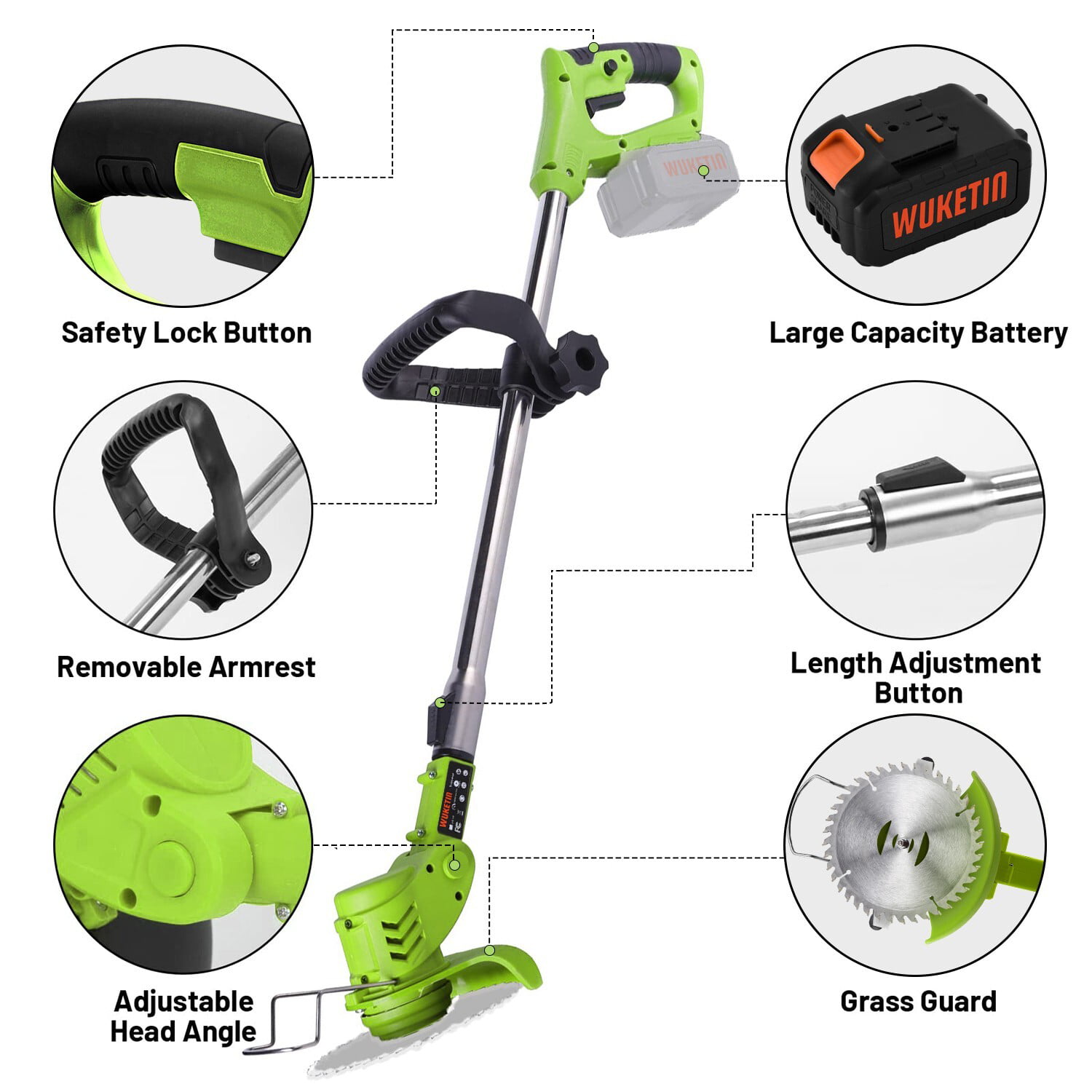 Electric Handheld Weed Lawn Eater Edger Grass 24V Portable Cordless String Trimmer Cutter with 2 Battery and 3 Types Cutting Blades