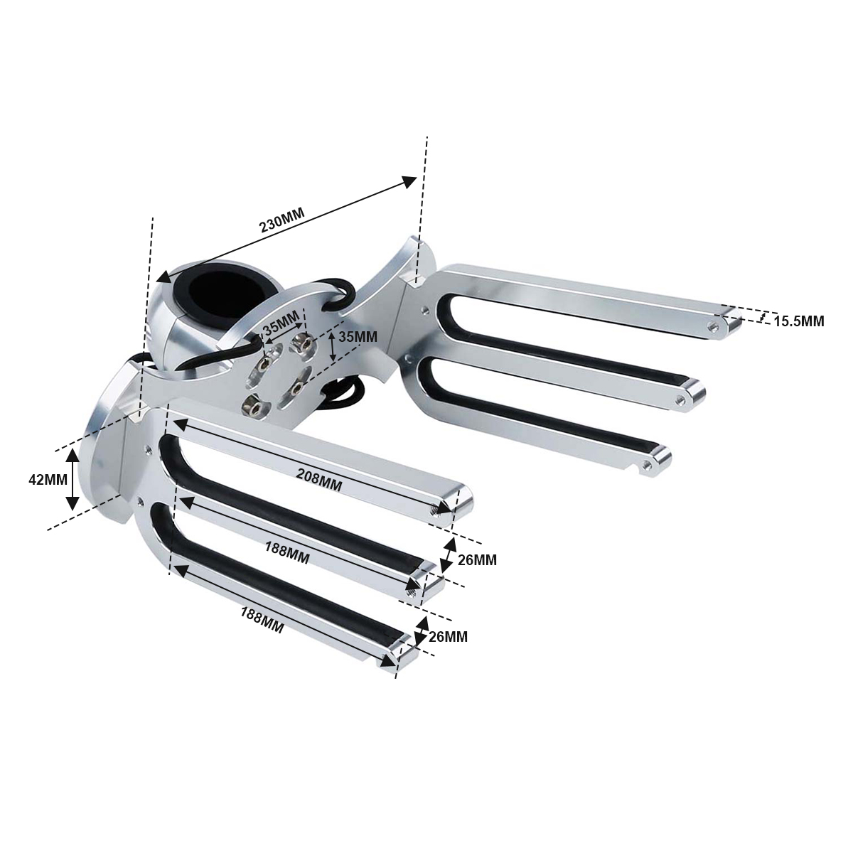 TCMT 2 Racks CNC Wakeboard Tower Rack CFR-WA-2 Bat Back Boat Surfboard / Kneeboard Holder Silver