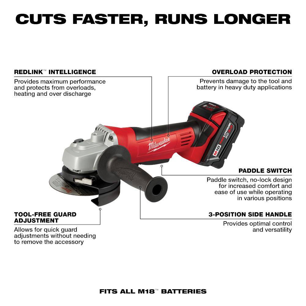 Milwaukee 2801-22CT-2680-20 M18 18V Lithium-Ion Brushless Cordless 1/2 in. Compact Drill/Driver Kit w/Two 2.0 Ah Batteries and 4-1/2 in. Grinder