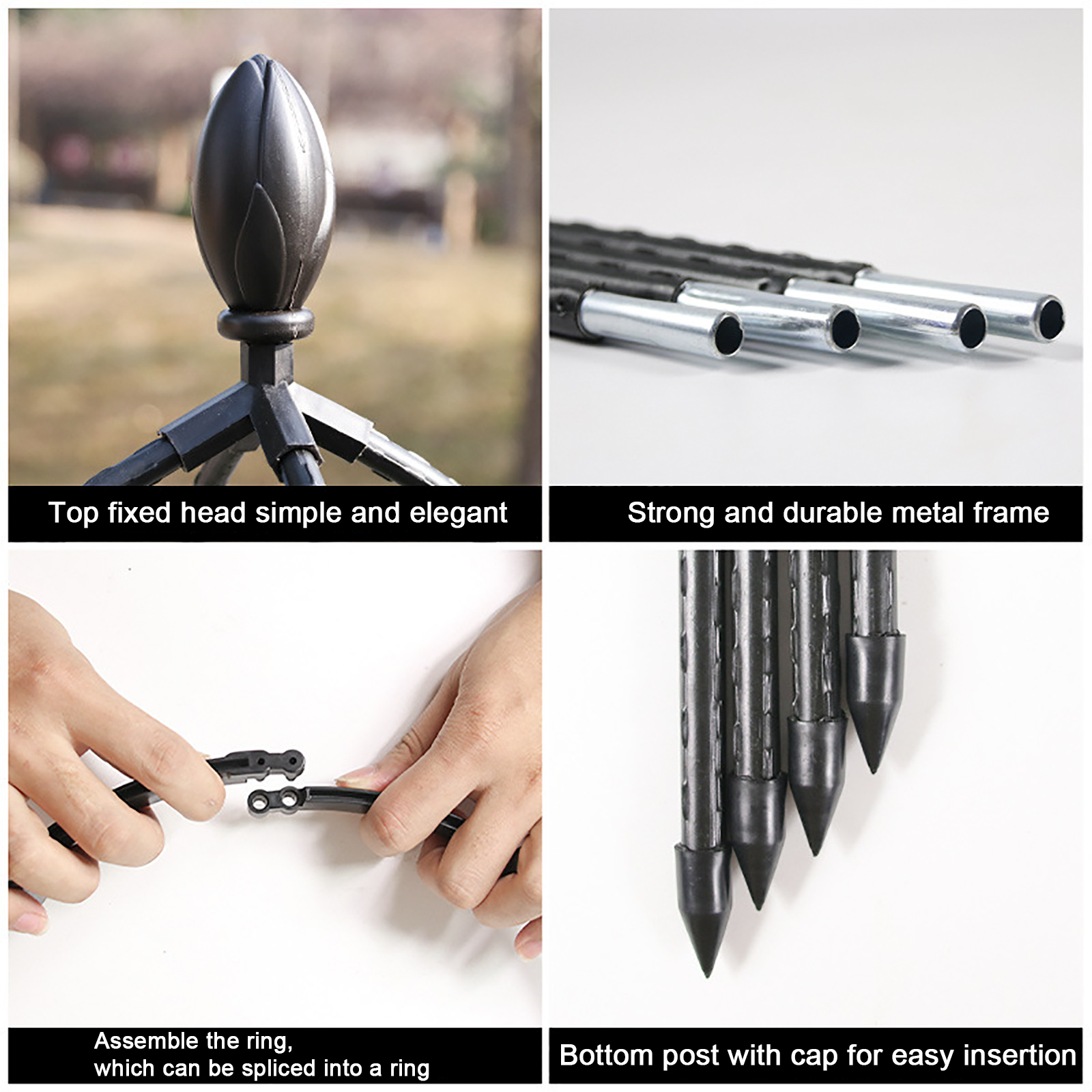 Plant Trellis Garden Obelisk Tool Set Durable Planting Support Frame Butterfly Clip Metal Black Tower Flower Stand