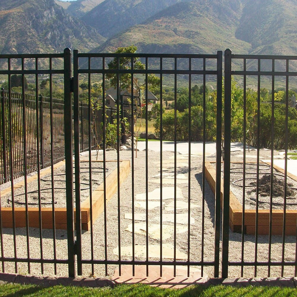 Fortress Building Products Versai 5-ft H x 5-ft W Gloss Black Powder-coated Galvanized Steel Spaced Picket Flat-top Privacy Walk-thru Fence Gate