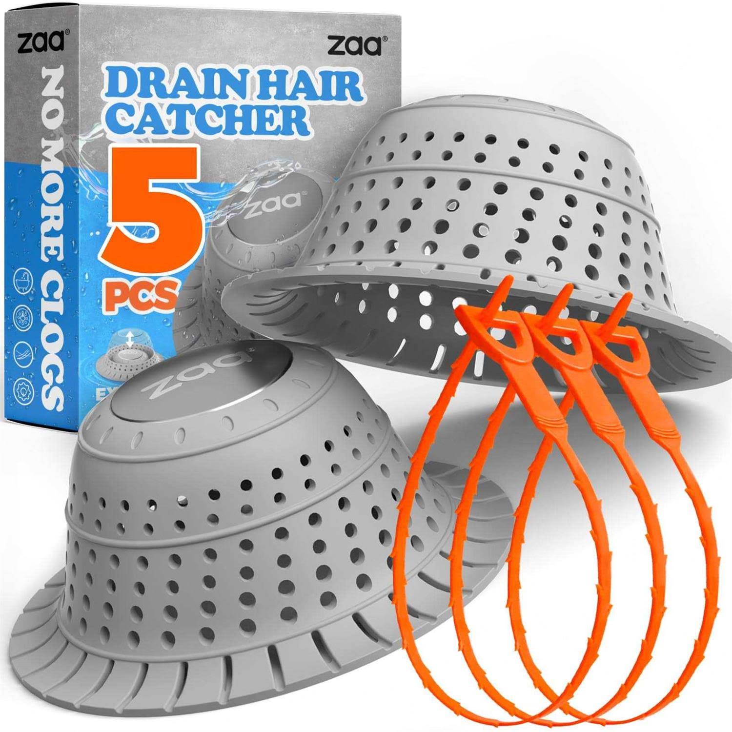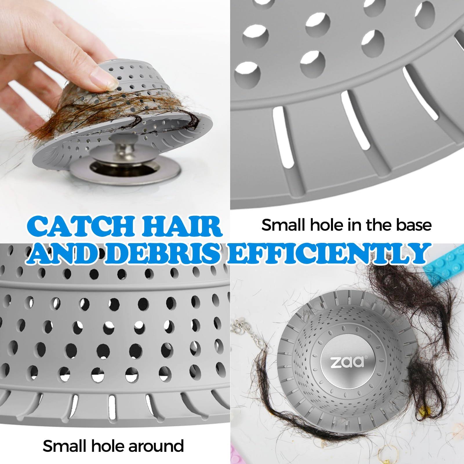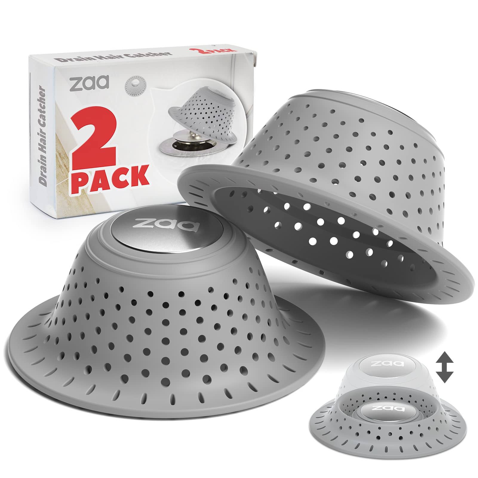 Zaa Bathtub Drain Hair Catcher, 2 Pack Silicone Collapsible Drain Protector for Pop-Up and Regular Drains of Bathtub, Tub, Shower, Bathroom