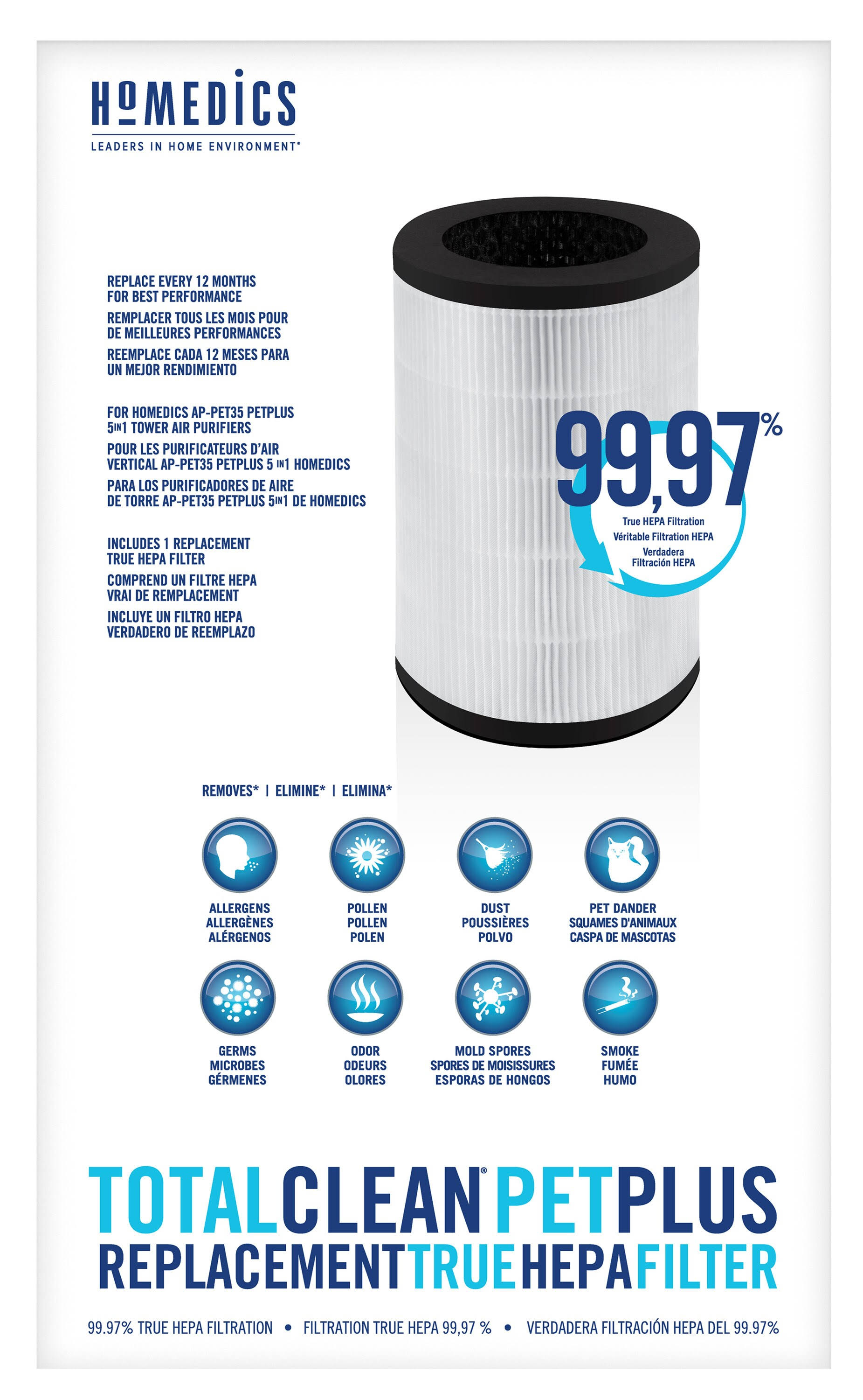 Homedics TotalClean PetPlus Replacement True HEPA Filter, White