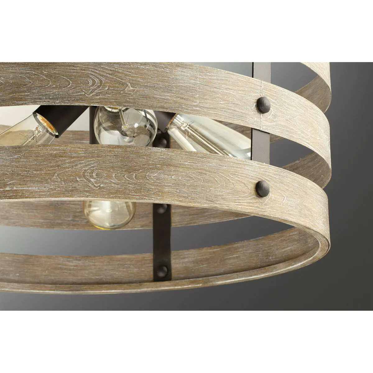 Progress Lighting P500022-143 Gulliver 8-1/2 in. 1-Light Graphite Coastal Drum Mini-Pendant with Weathered Gray Wood Accents