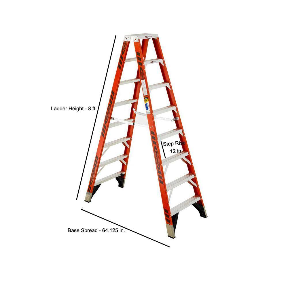 Werner T7408 8 ft. Fiberglass Twin Step Ladder with 375 lb. Load Capacity Type IAA Duty Rating