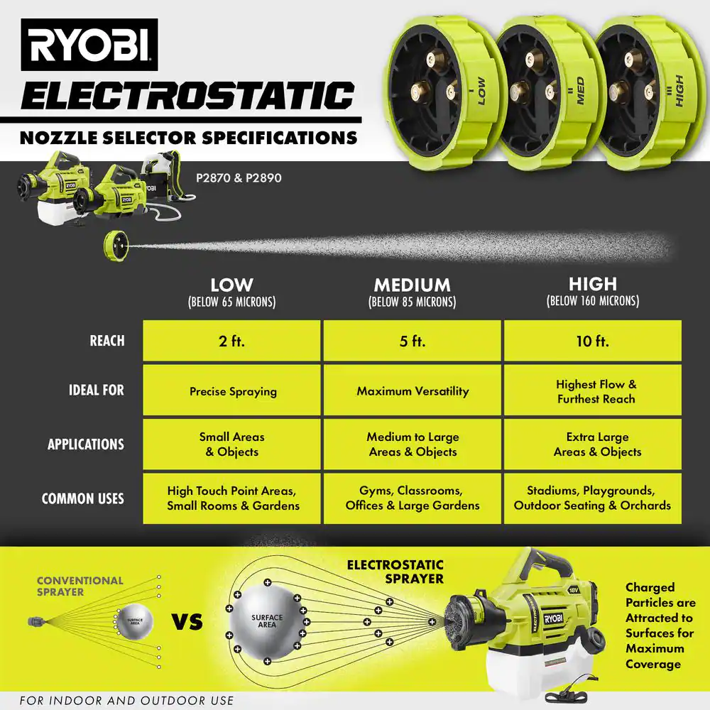 RYOBI P2890 ONE+ 18V Cordless Electrostatic 0.5 Gal Sprayer with 2.0 Ah Battery and Charger