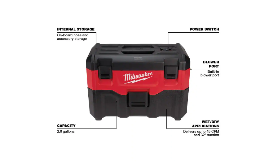 Milwaukee 0880-20 M18 18-Volt 2 Gal. Lithium-Ion Cordless Wet/Dry Vacuum (Tool-Only)