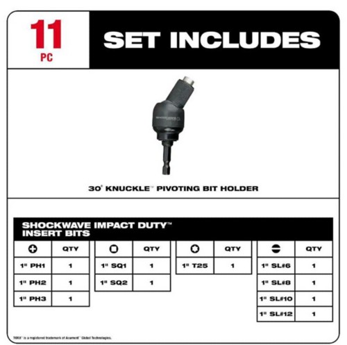 Milwaukee 30 Degree Knuckle Bit Holder 11 pc Set