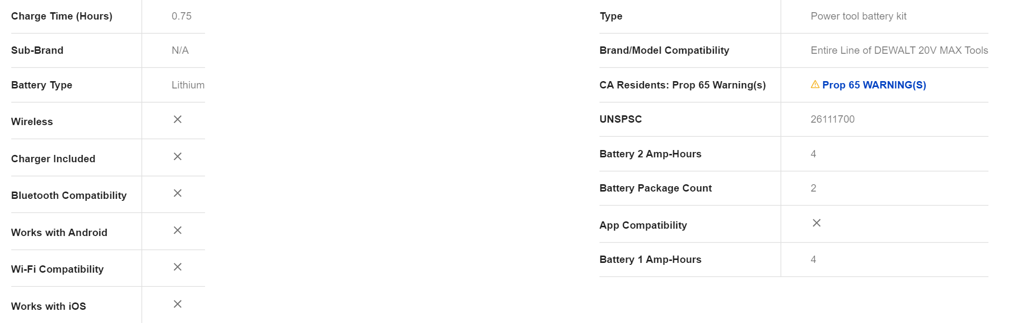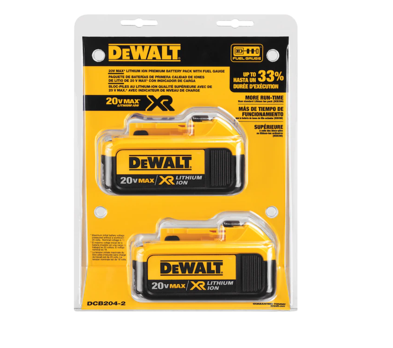 DEWALT DCB204-2 20-Volt Max 2-Pack 4 Amp-Hour; 4 Amp-Hour Lithium Power Tool Battery Kit