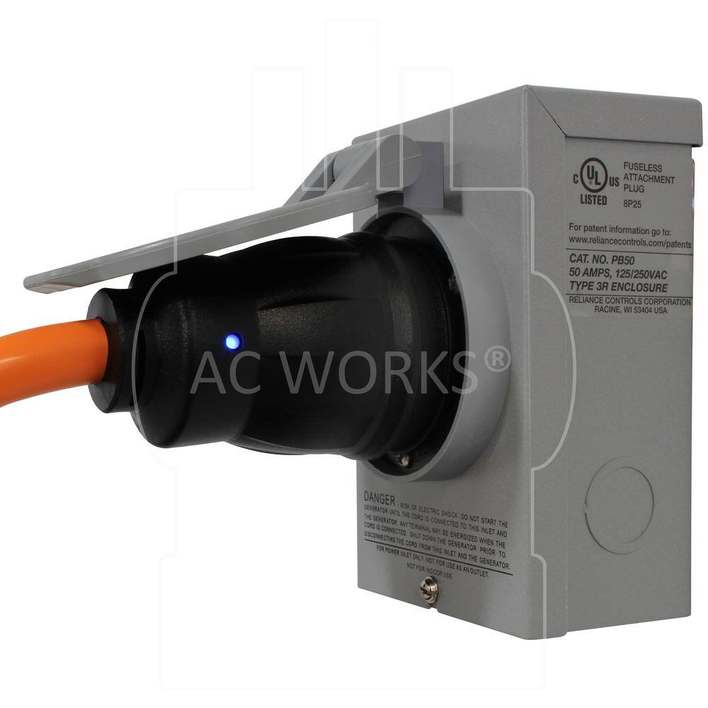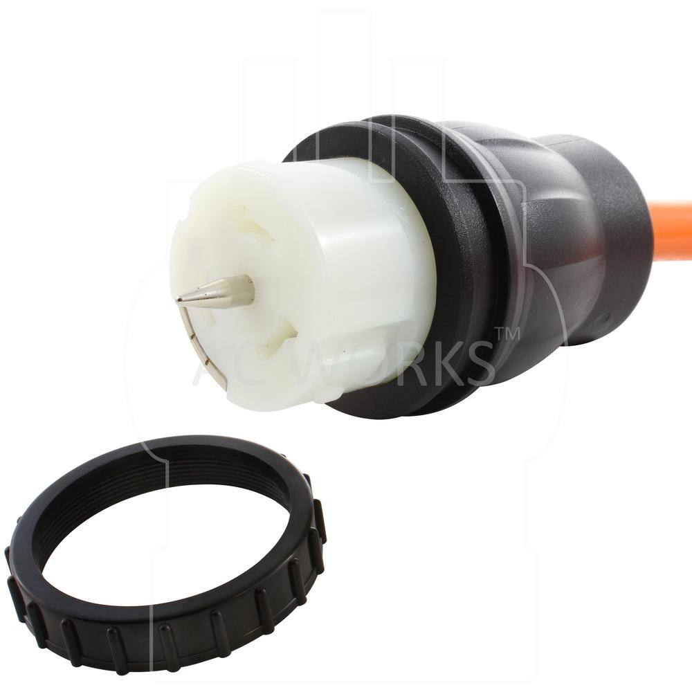 AC WORKS TEL1430-018 1.5 ft. 30 Amp 4-Prong Locking Plug to 50 Amp Locking Connector 10/4 Generator Transfer Switch AC Connectors