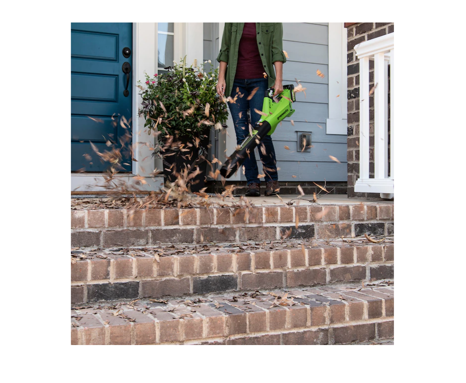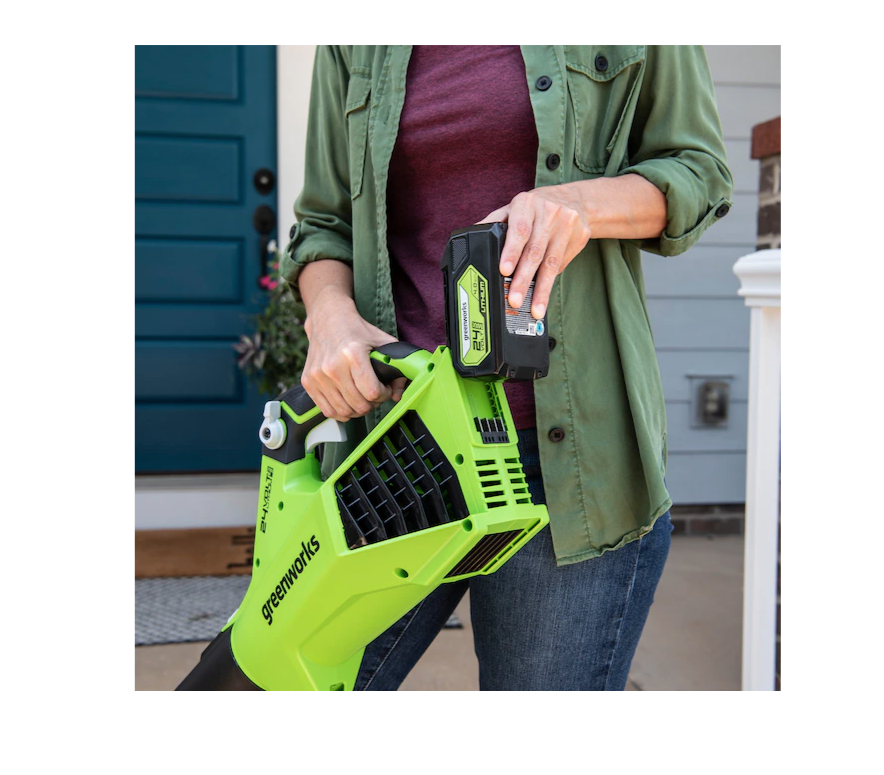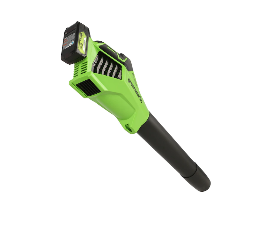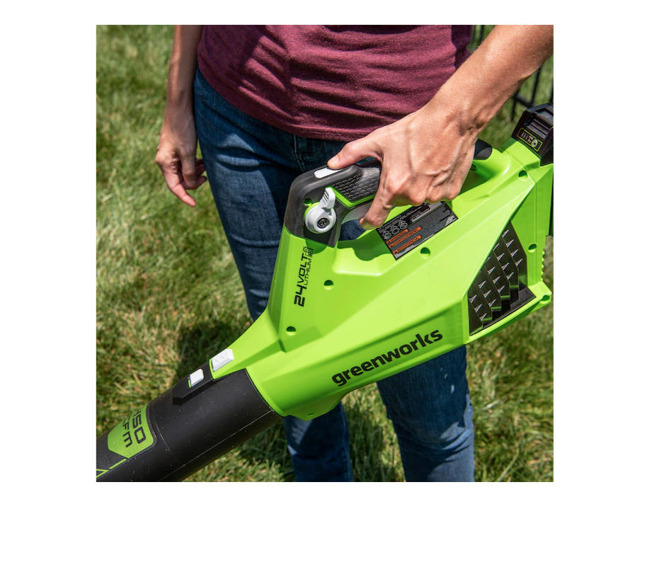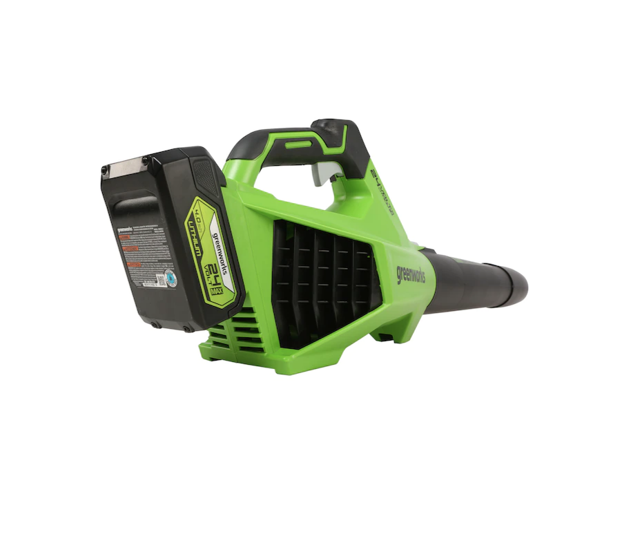 Greenworks BL24L410 24-volt 450-CFM 110-MPH Brushless Handheld Cordless Electric Leaf Blower 4 Ah (Battery & Charger Included)