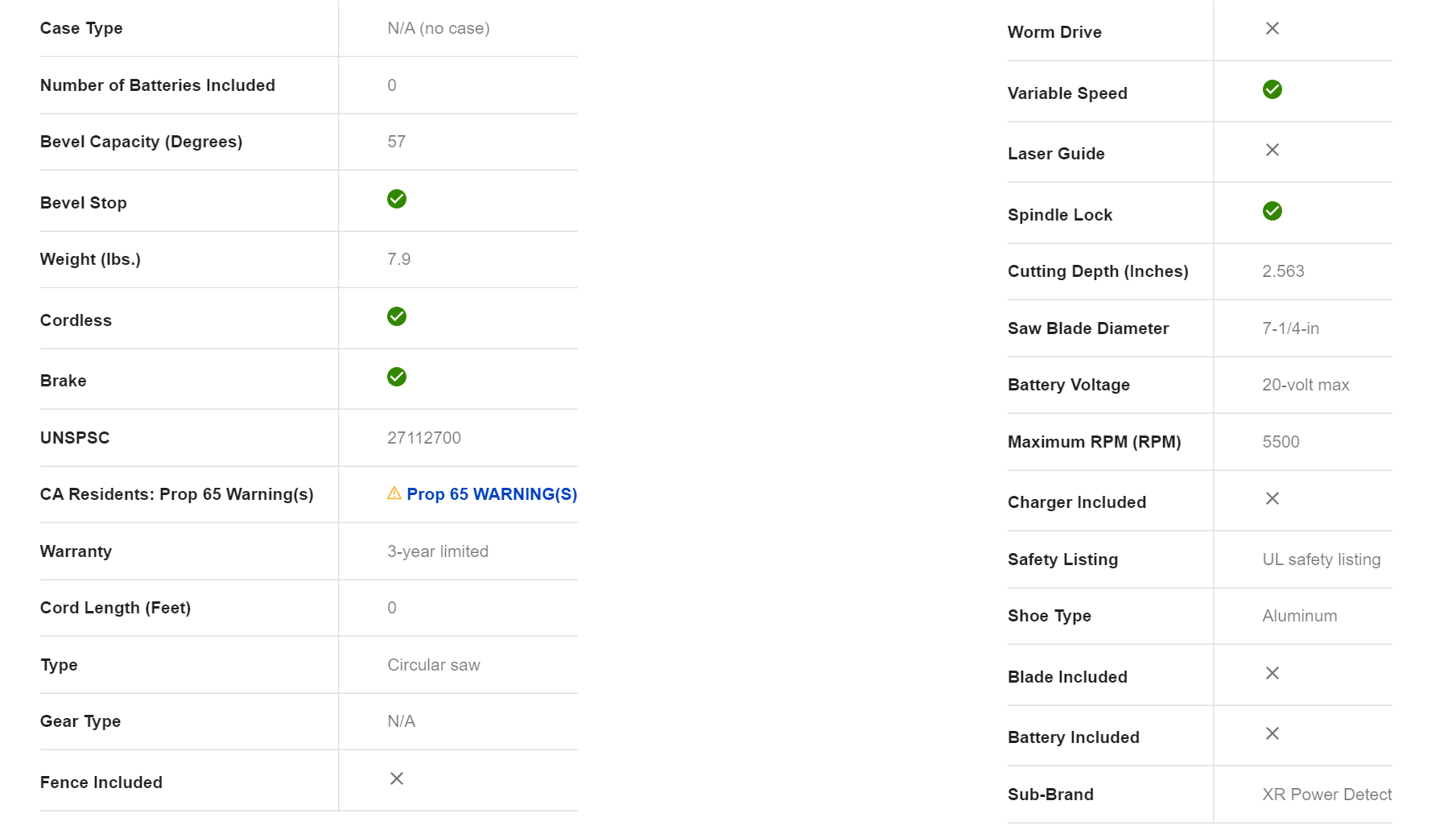 DEWALT Circular Saw DCS574B XR POWERDETECT 20-Volt Max 7-1/4-in Cordless