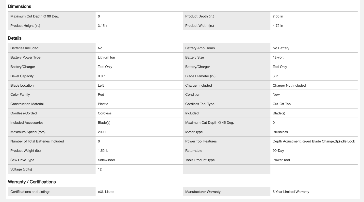 Milwaukee 2522-20 M12 FUEL 12-Volt Lithium-Ion Brushless Cordless 3 in. Cut Off Saw (Tool-Only)