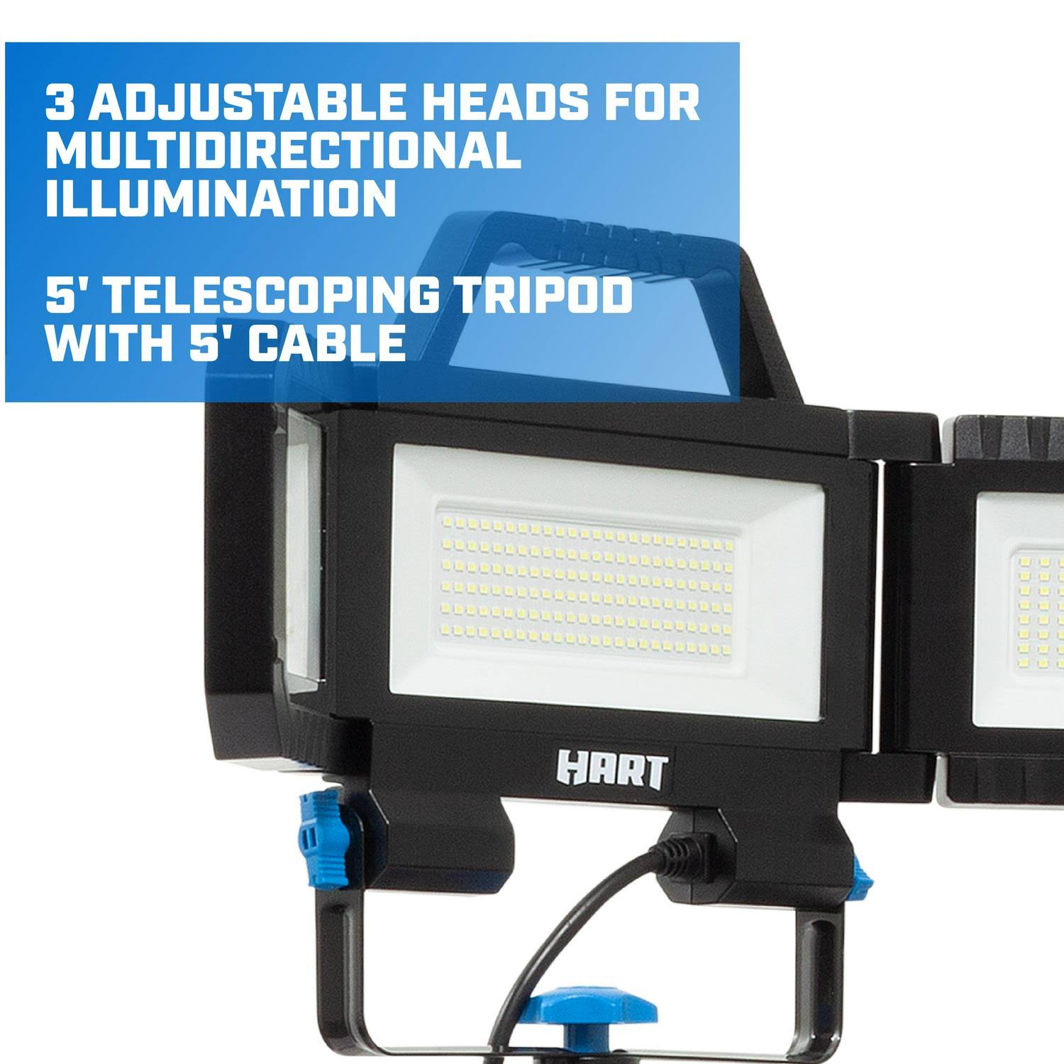Hart LED 3-Head Adjustable Plug-In Work Light with Tripod, 7000 Lumens