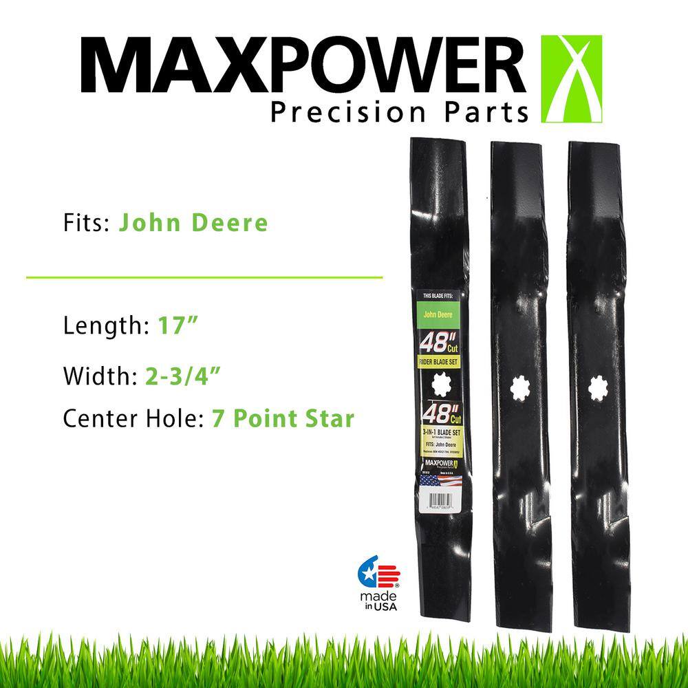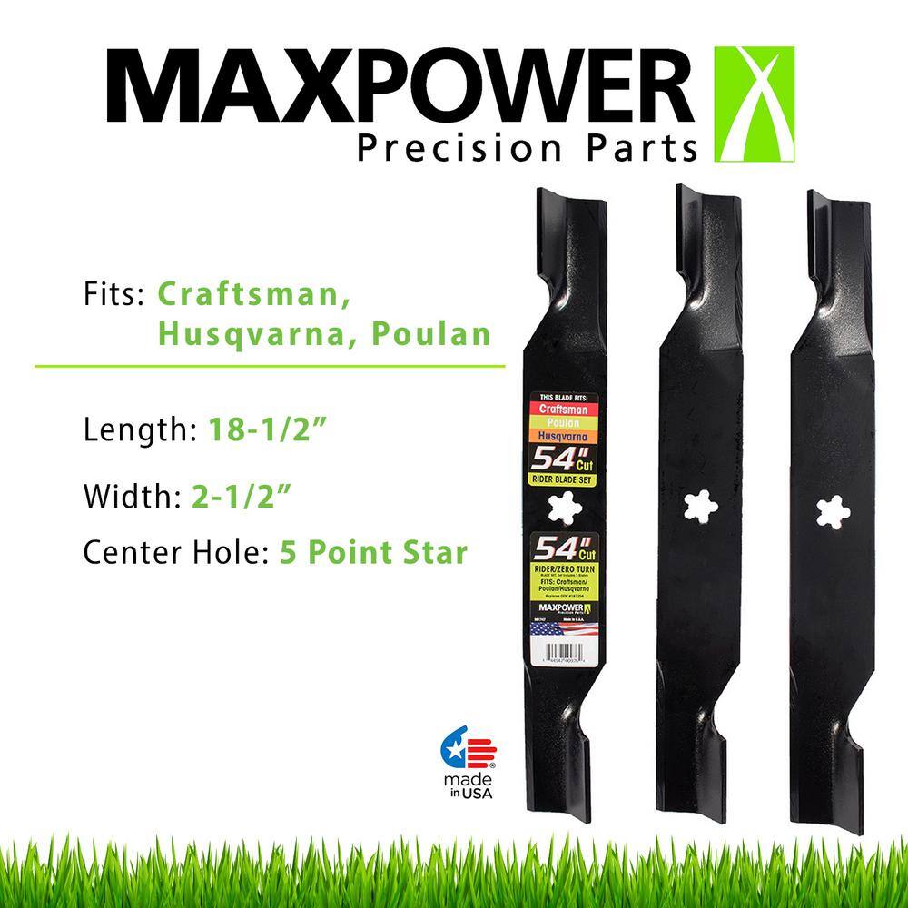 MaxPower 561747B 3 Blade Set for Many 54 in. Cut Craftsman. Husqvarna. Poulan Mowers Replaces OEM #-s 187256 and 532187256