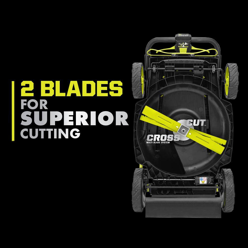 RYOBI P11100 ONE+ 18V HP Brushless Whisper Series 20″ Self-Propelled Dual Blade Walk Behind Mower-(4) 4.0 Batteries and (2) Chargers