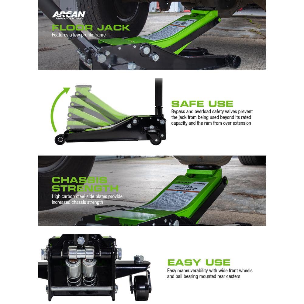 Arcan A20002 3-Ton Low Profile Steel Floor and Car Jack with Quick Rise