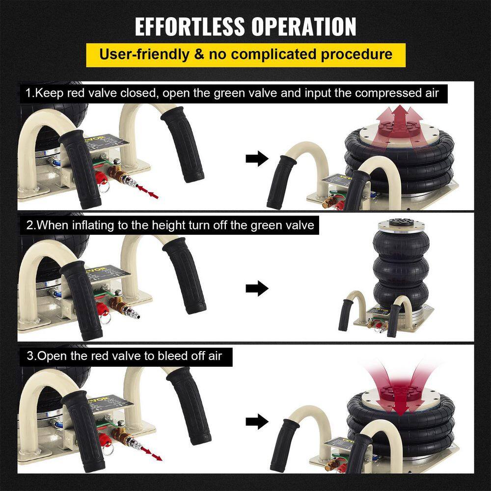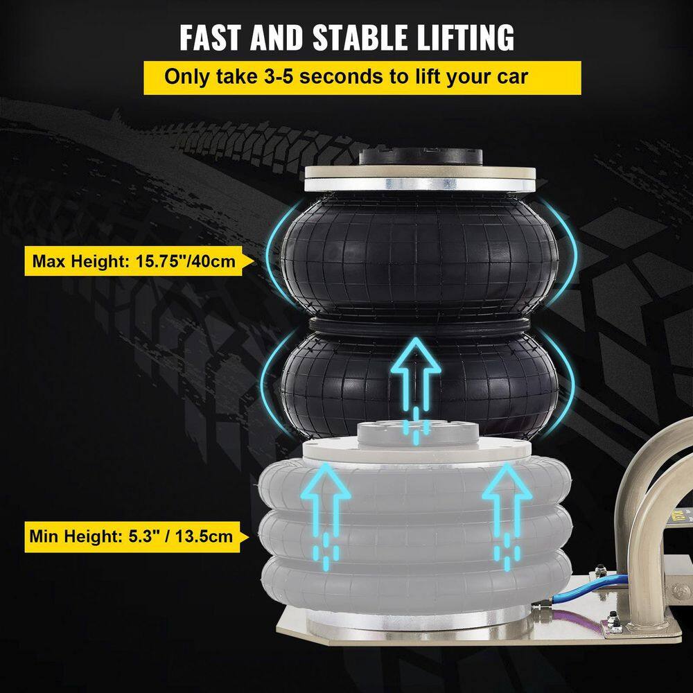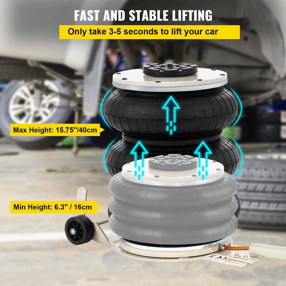 VEVOR QJD5TSBQNS0000001V0 Pneumatic Air Jack 5-Ton/11000 lbs. Triple Bag Air Jack Lifting Height 6.3 in. to 15.75 in. Inflatable Car Jack Lifter
