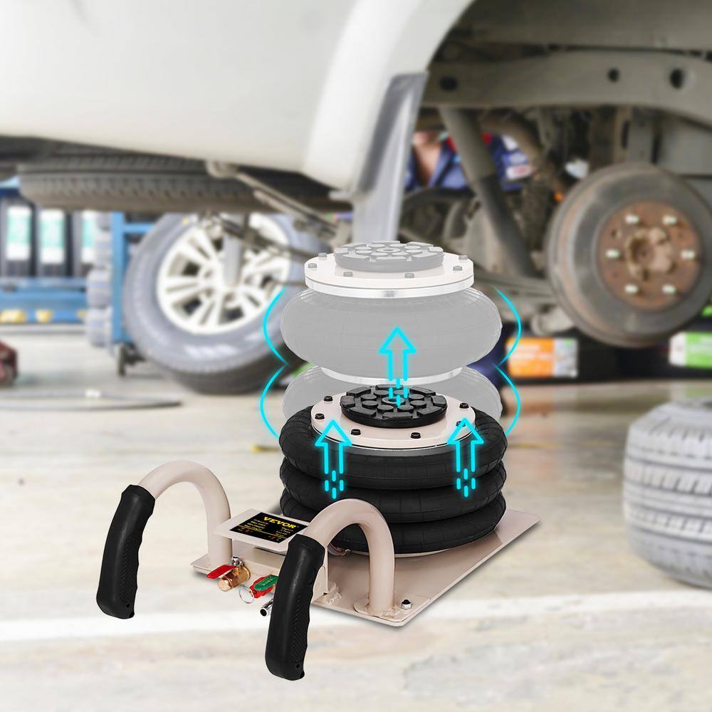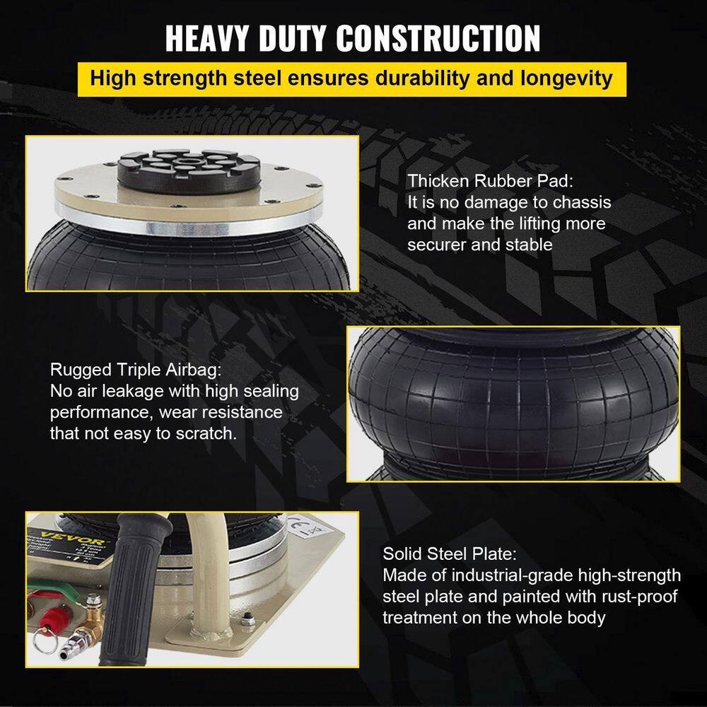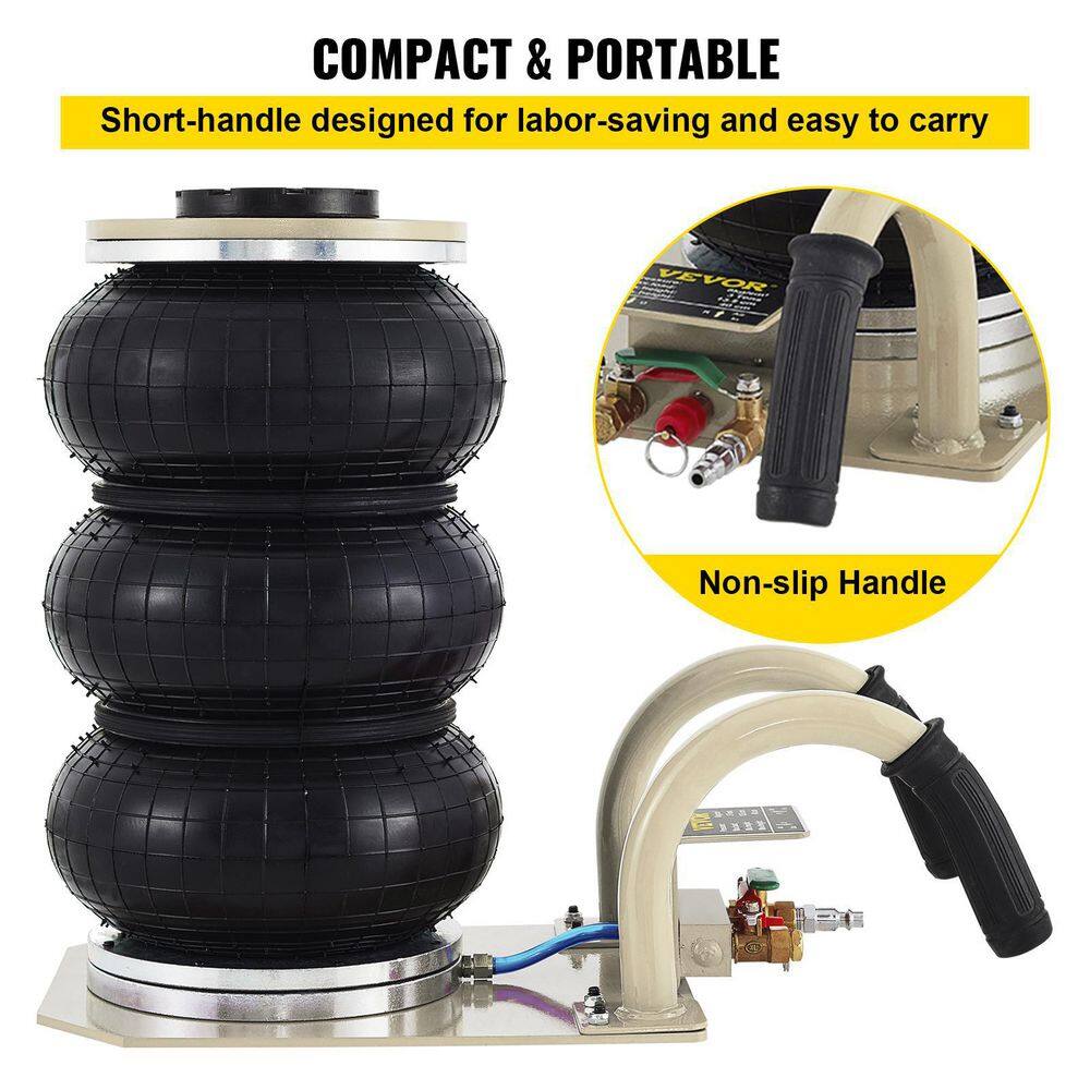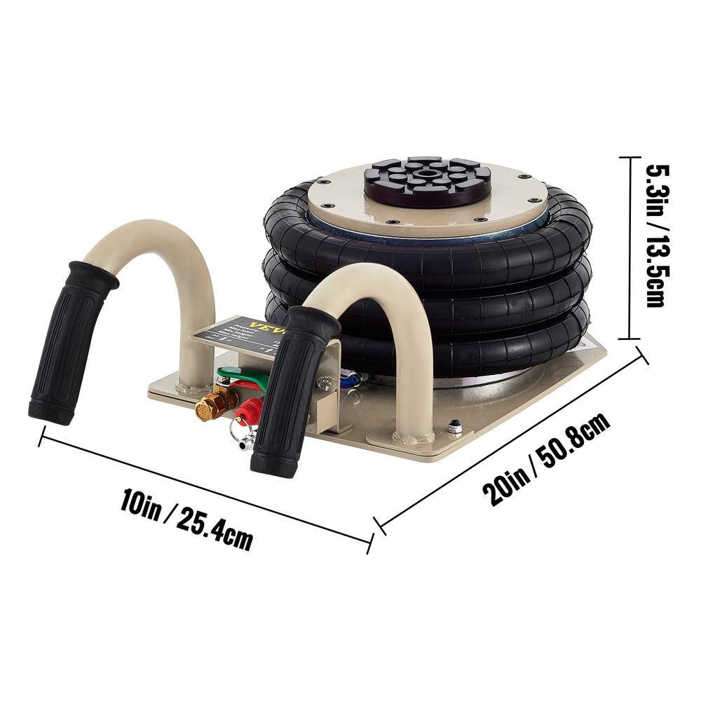 VEVOR QJD3BQDQJD0000001V0 Pneumatic Jack 3 Ton Triple Bag Air Jack Lifting Height Pneumatic Air Jack 6600 lbs. Capacity Floor Jack