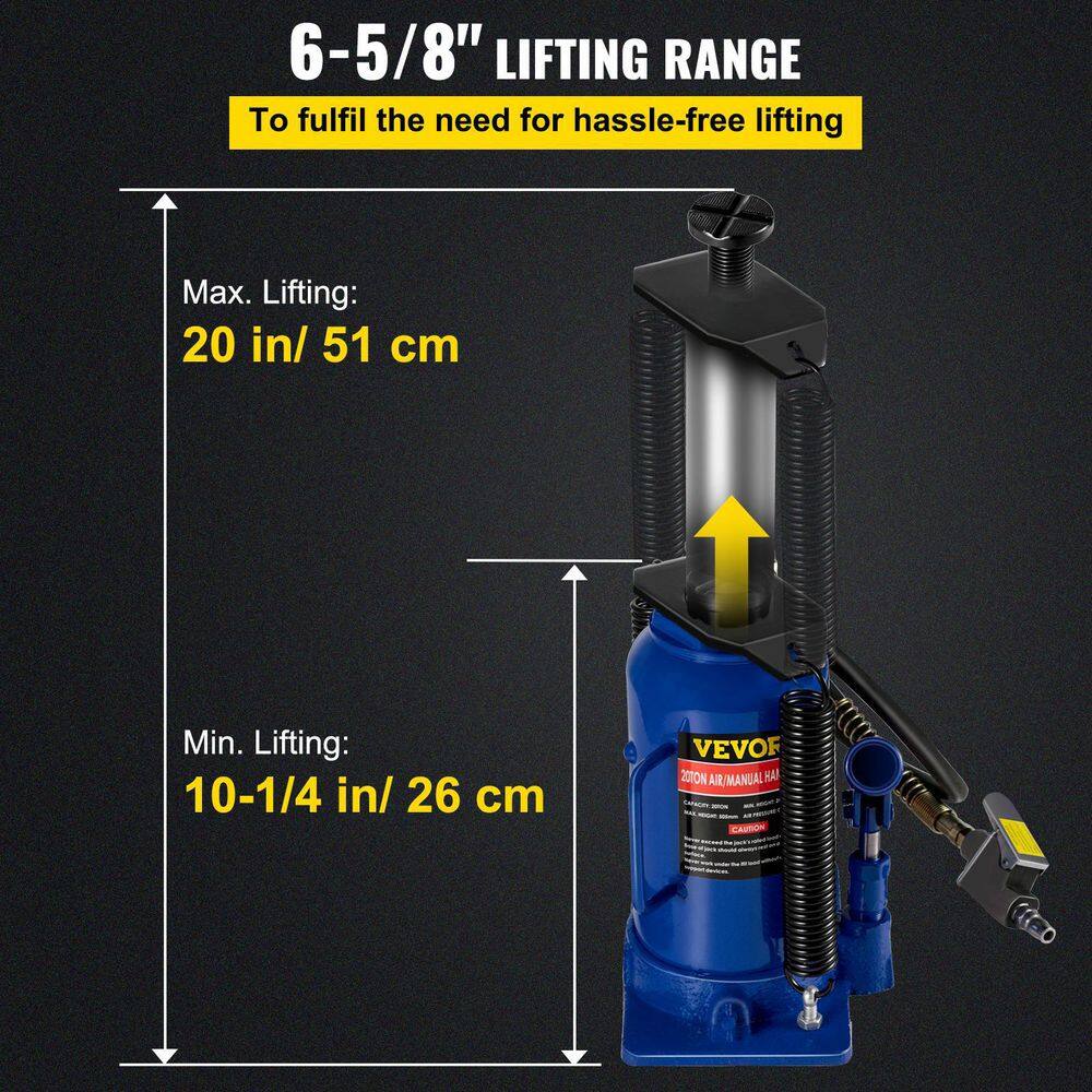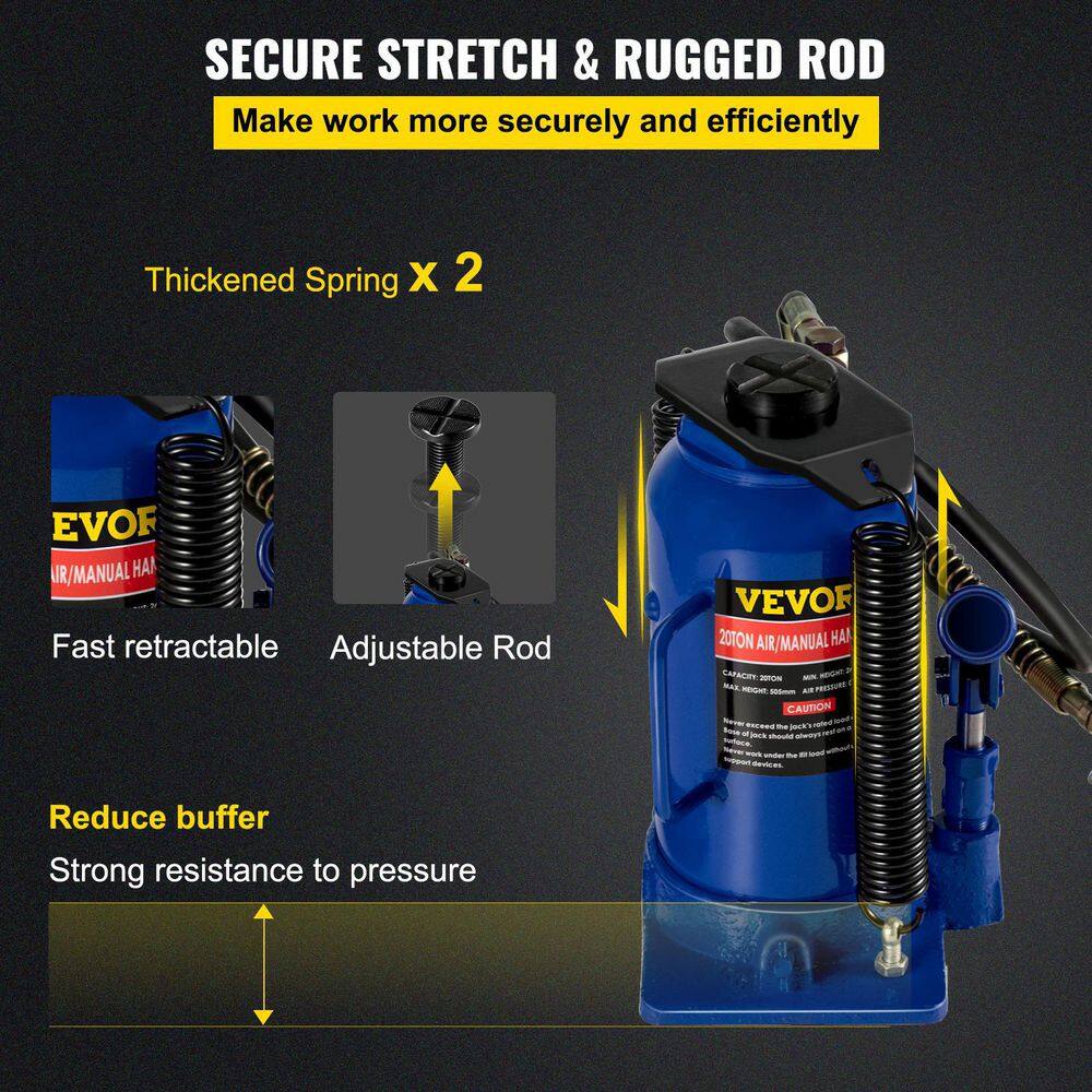 VEVOR QJD20TYYGSBE00001V0 20-Ton Air Hydraulic Bottle Jack Bottle Jack Air Jack Heavy-Duty Auto Truck Repair Lift in Blue