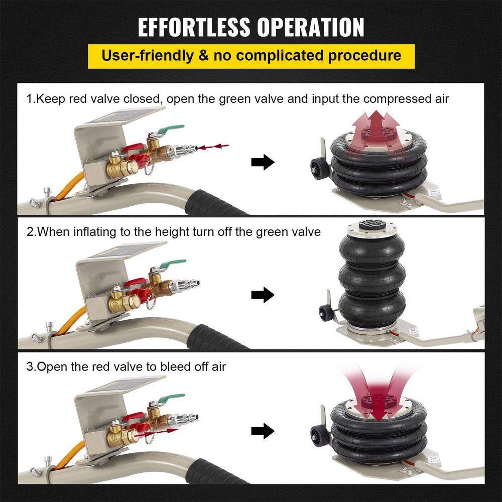 VEVOR 3BCQQJD0000000001V0 3 Bag Air Jack 6600 lbs. Capacity Pneumatic Jack 16 in. Lifting Height Pneumatic Air Jack