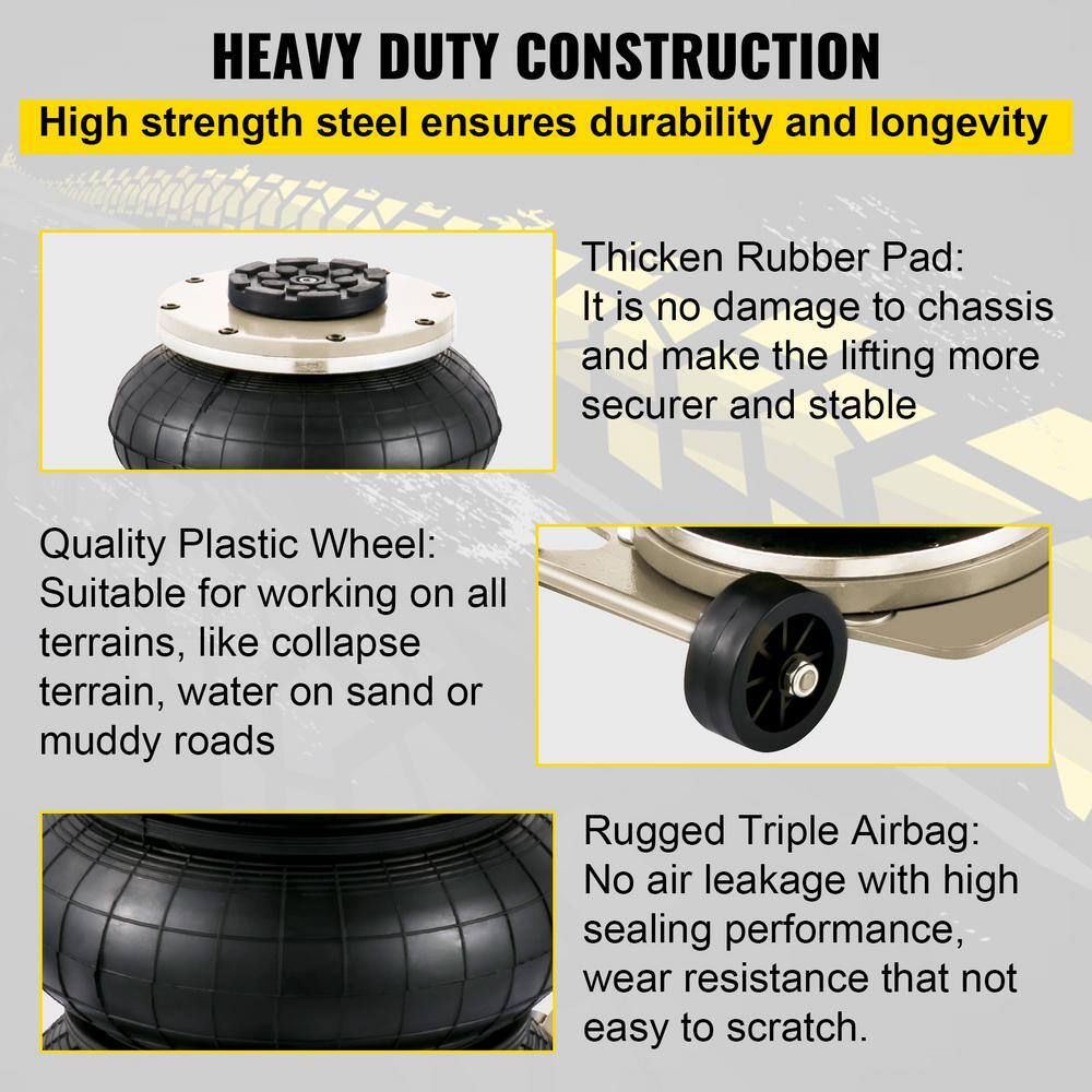 VEVOR QNQJD3TBSDDJBS001V0 Triple Bag Air Jack 3T/6600 lbs. Air Bag Jack Fast Lift Up to 15.75 in. in 3 to 5S with Adjustable Handle for Cars.Beige