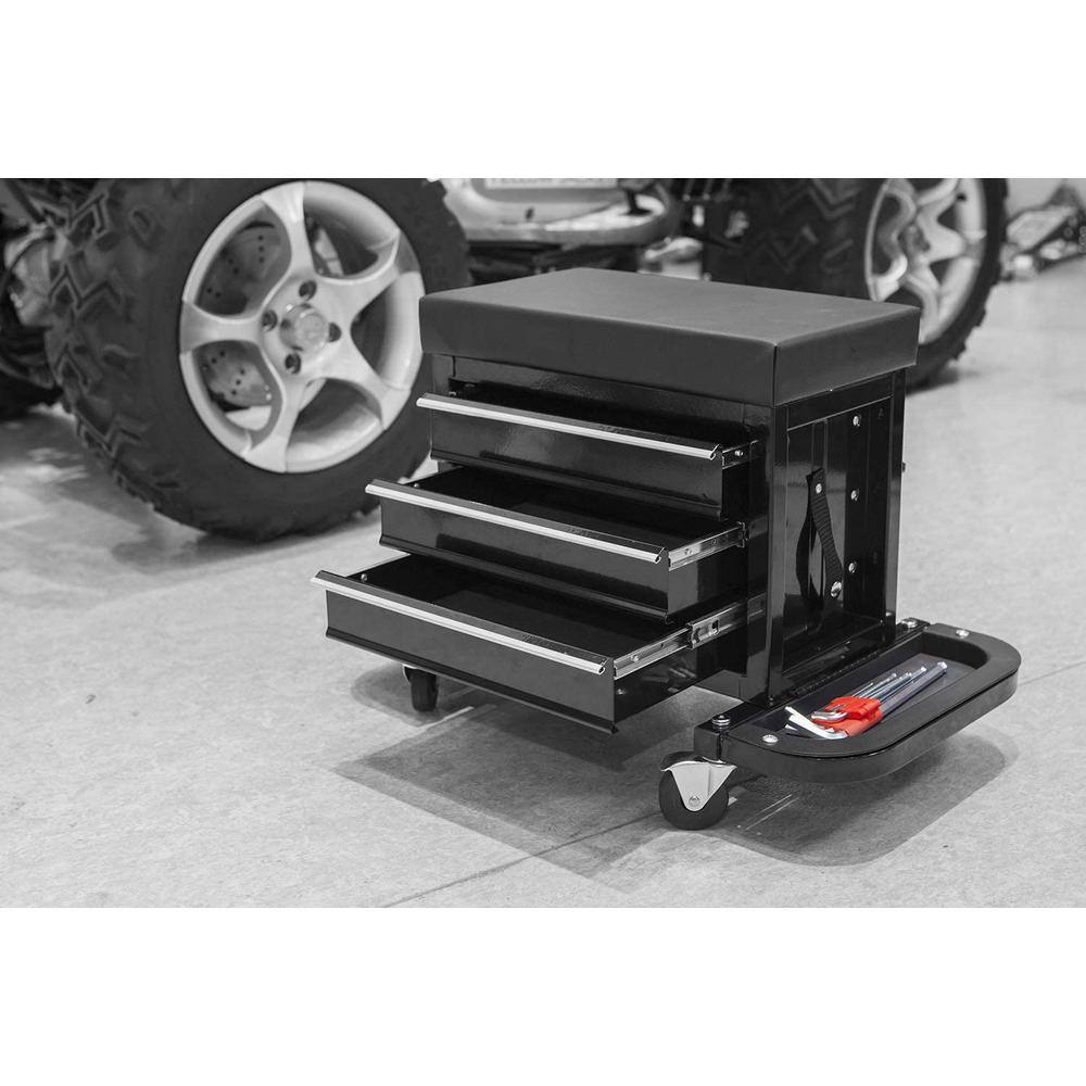 Torin APD2018R 350 lbs. 26.5 in. L 3-Drawer Rolling Mechanic Creeper Seat with 16-Slot Tool Tray