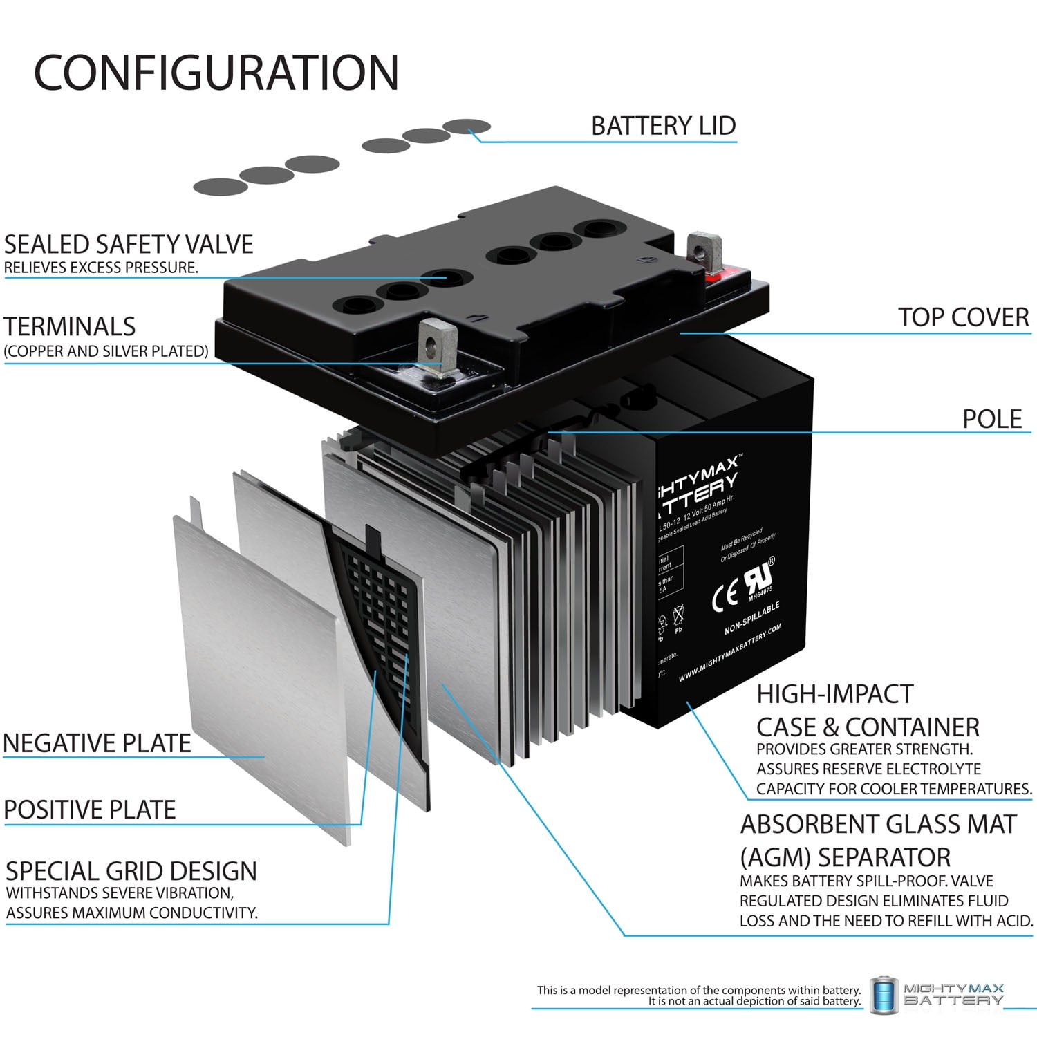 Mighty Max Battery 12V 50AH Replacement Battery for FirstPower LFP1240. LFP1240B