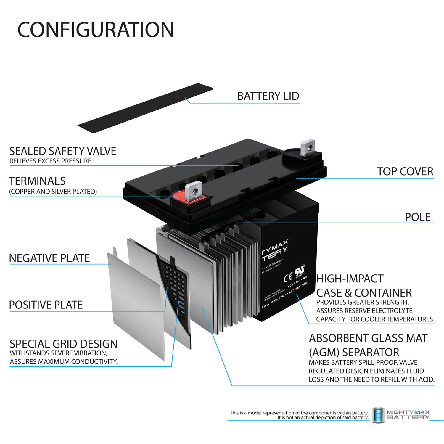 Mighty Max Battery ML35-12 - 12V 35AH Pride Mobility BATLIQ1001 AGM U1 Replacement Battery