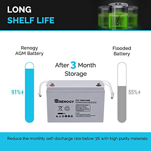 Renogy 12V 100Ah Deep Cycle AGM Battery w/Battery Box for RV. Solar Marine and Off-grid Applications
