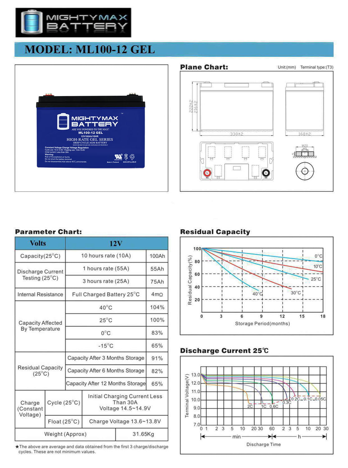 12V 100AH GEL Battery Replaces Solar Wind Deep Cycle VRLA 12V 24V 48V