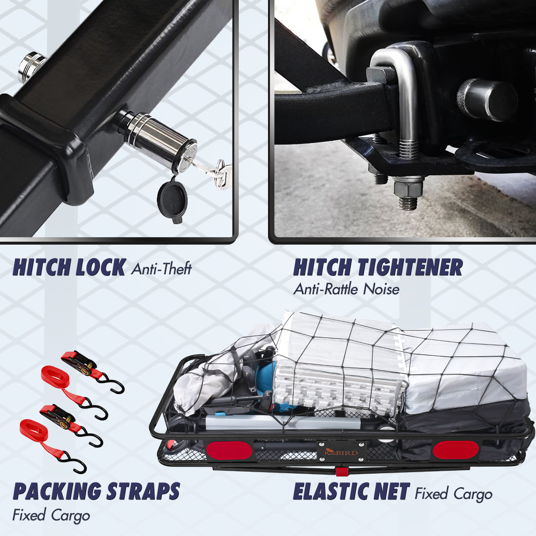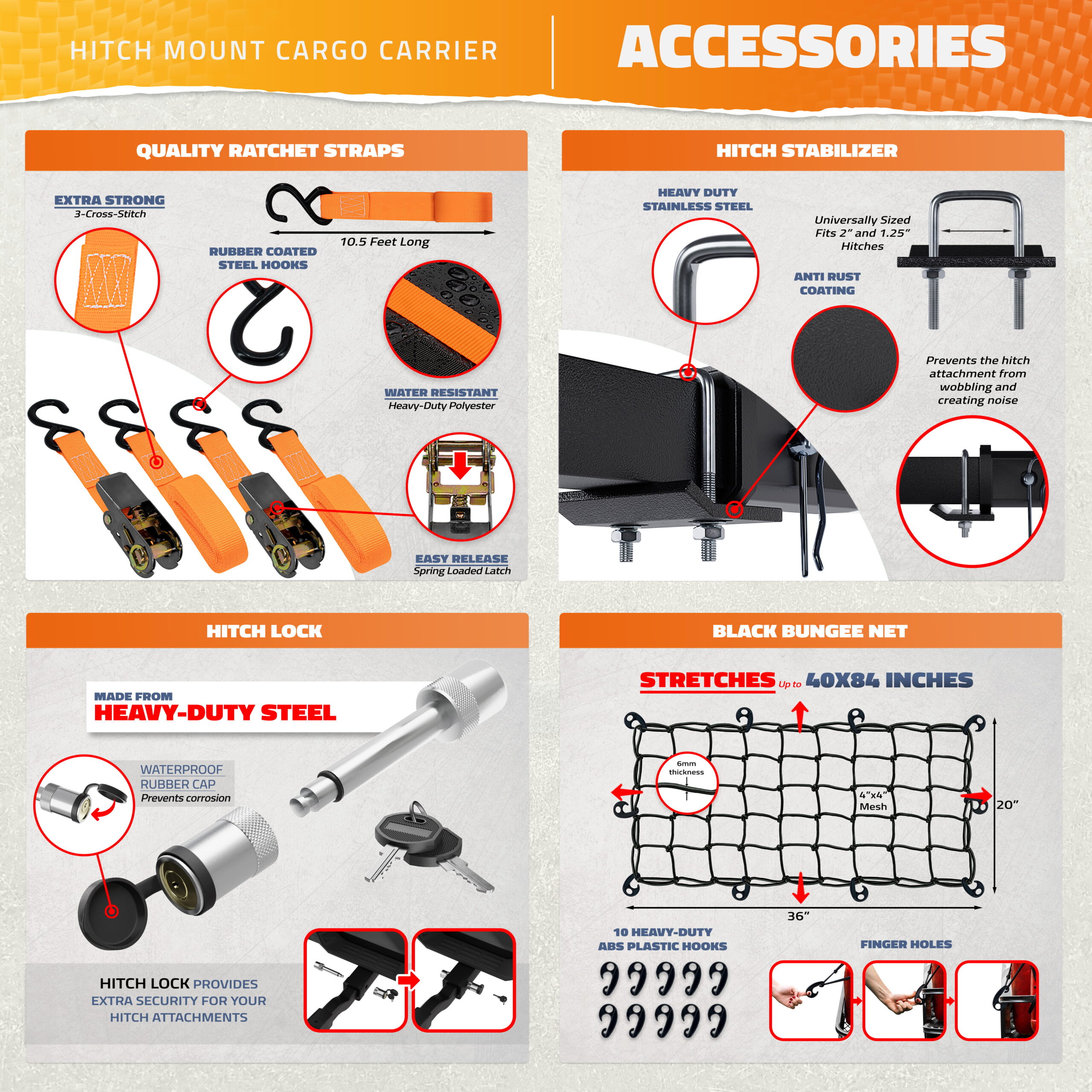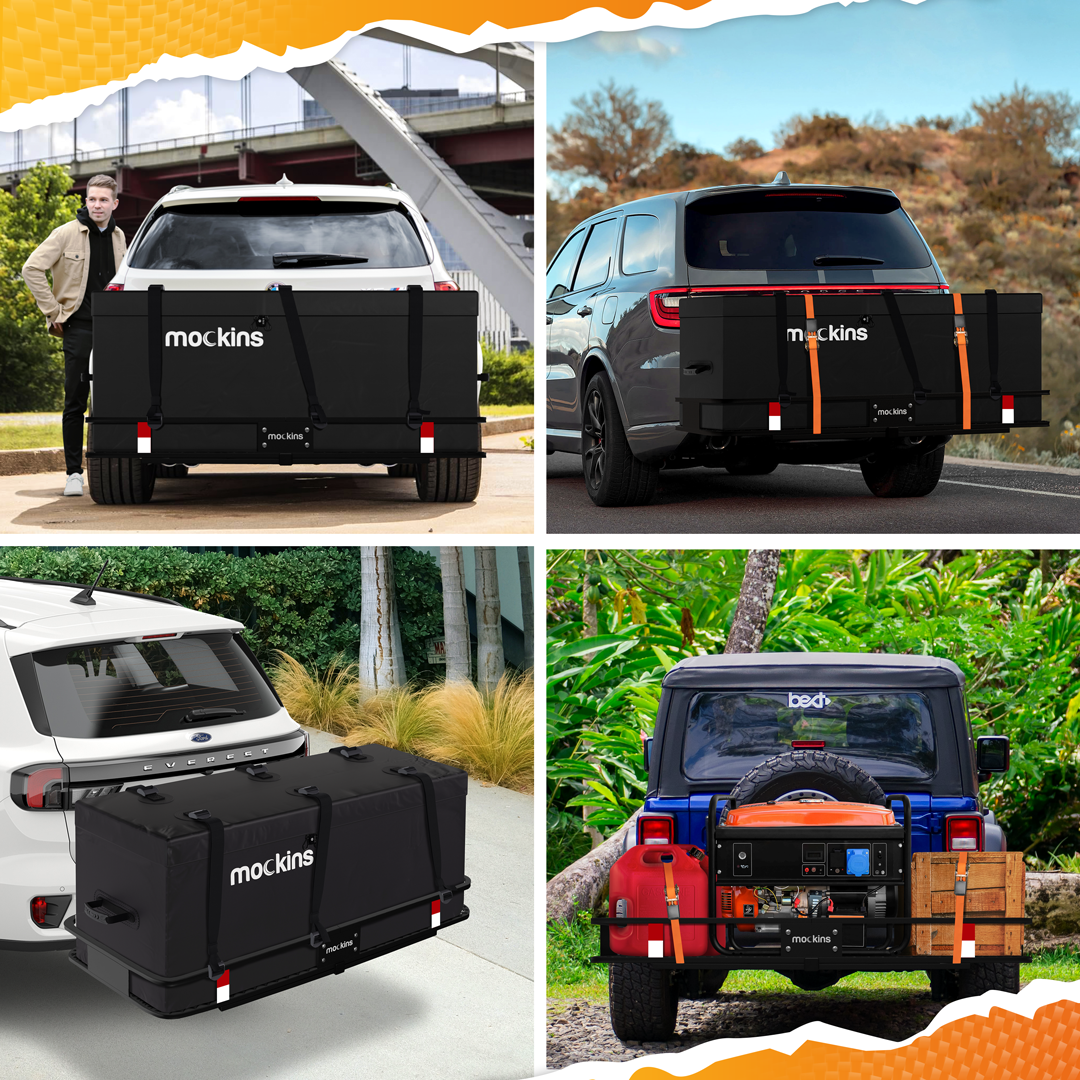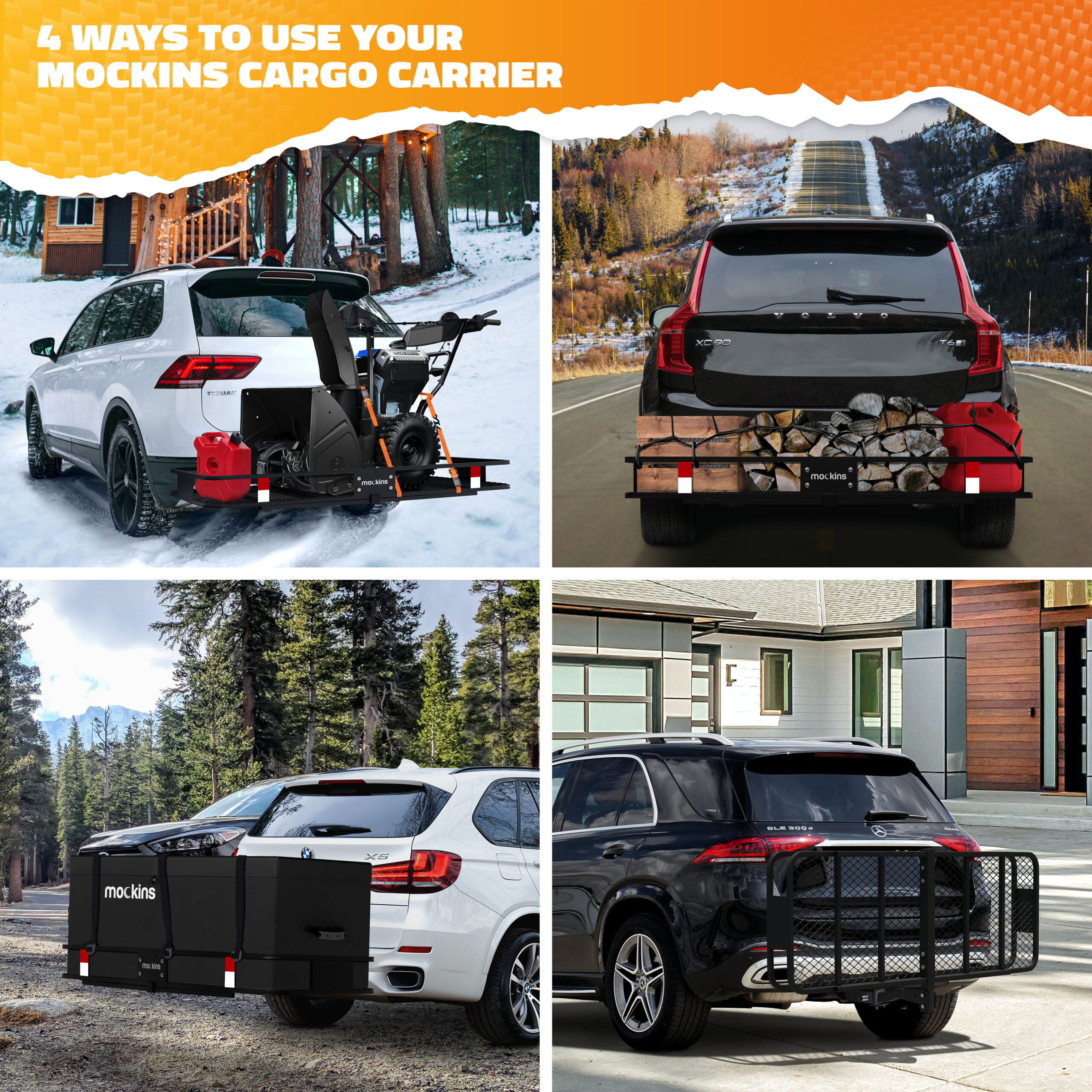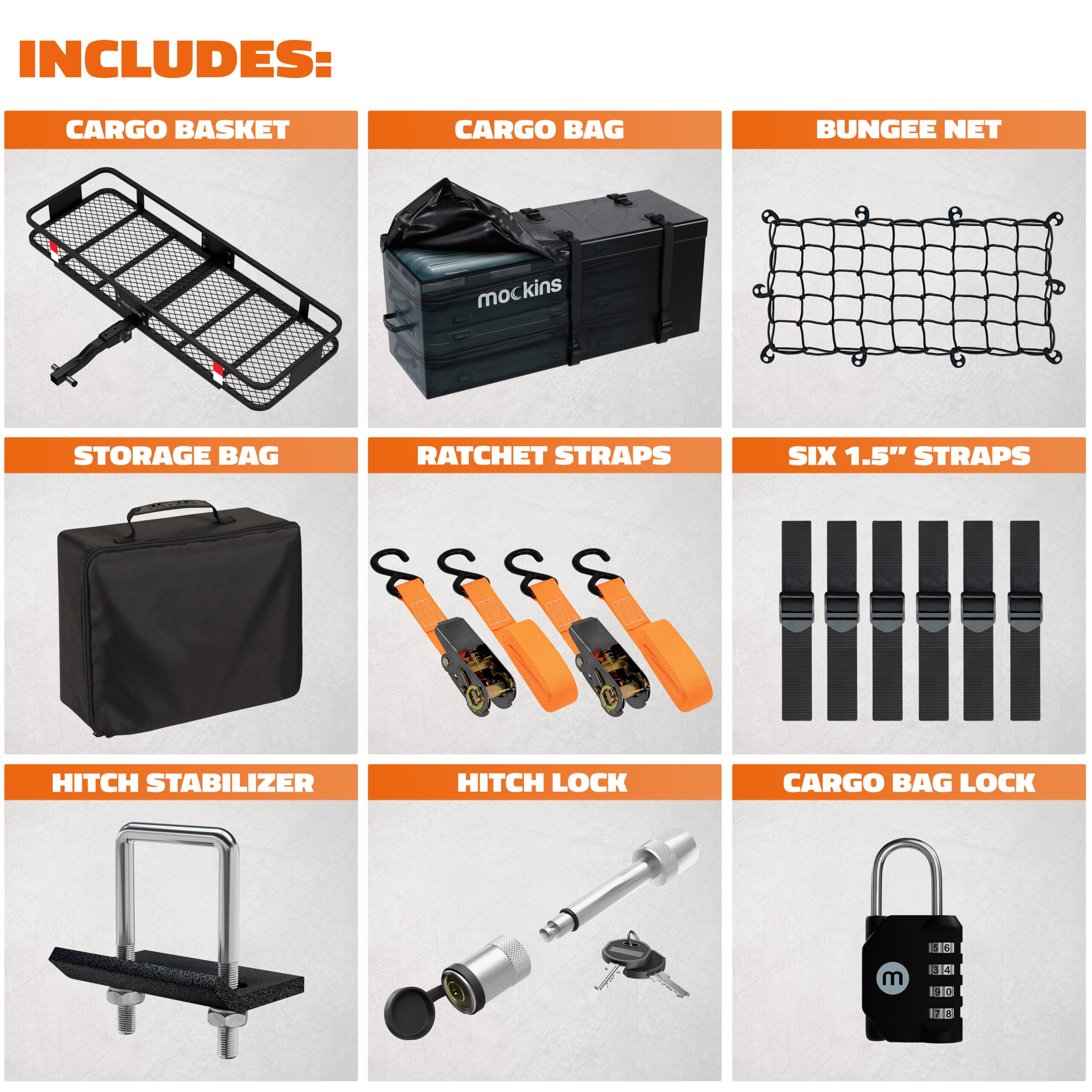 Mockins Car Hitch Cargo Carrier - 500 lbs. Cargo Basket Capacity. 16 CF Cargo Bag + Accessories | 2″ Hitch Receiver