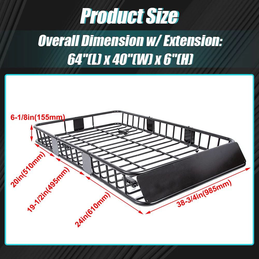 Arksen 64″ Universal Black Roof Rack Cargo with Extension Car Top Luggage Holder Carrier Basket SUV
