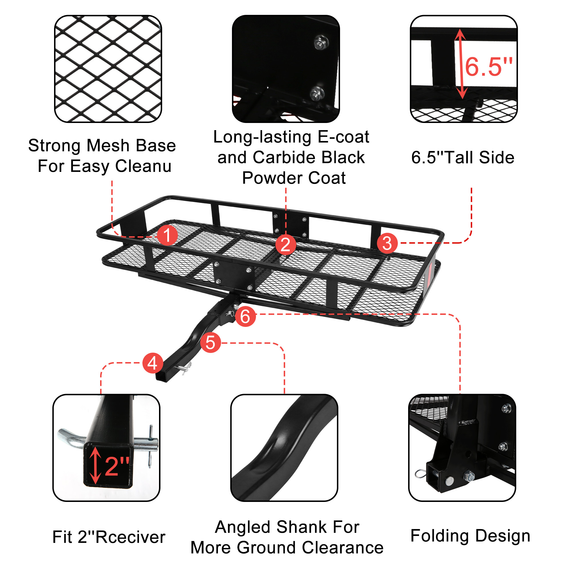 Karmas Product 500 Lbs. Capacity Folding Hitch Mount Cargo Carrier 60'' x 24'' x 6.5''