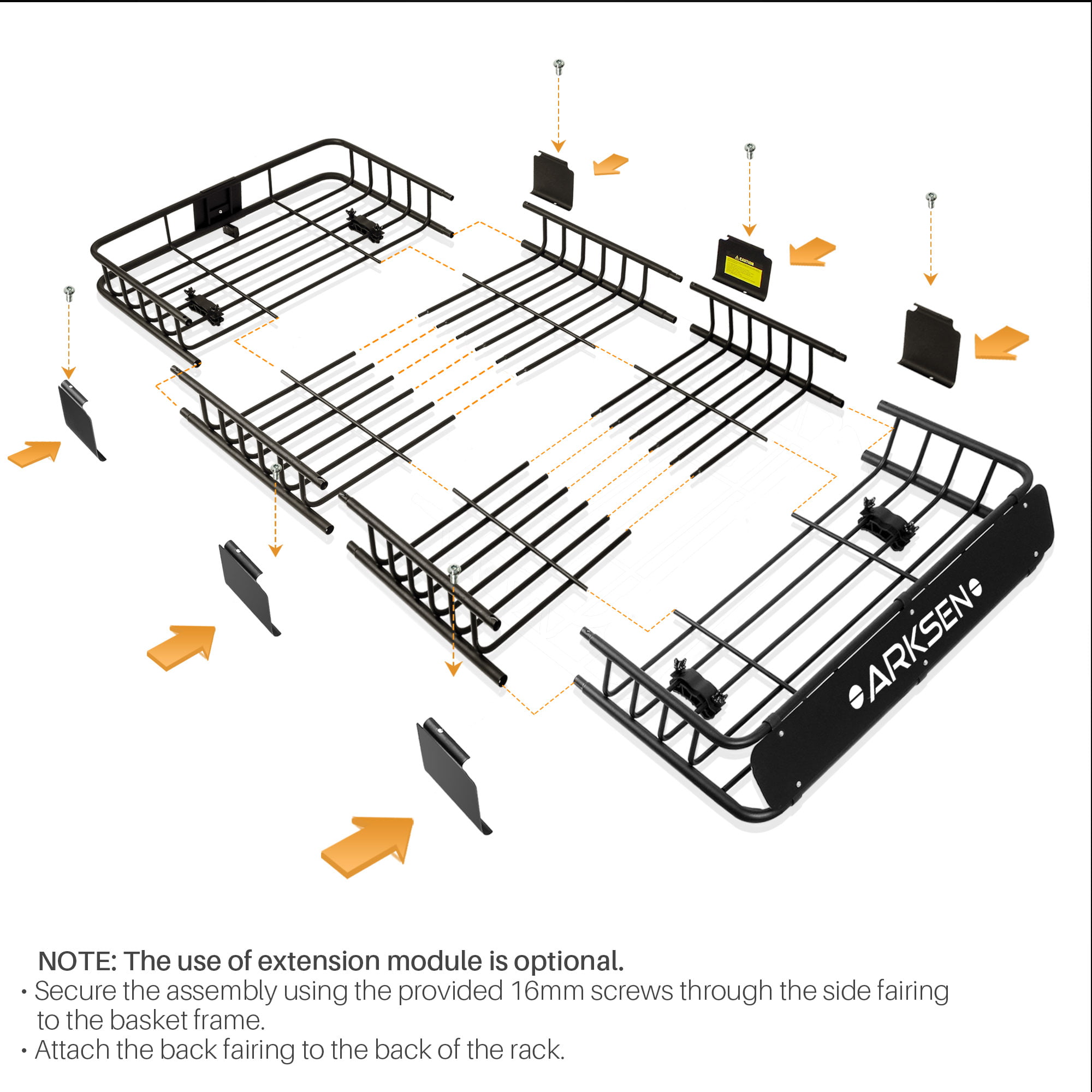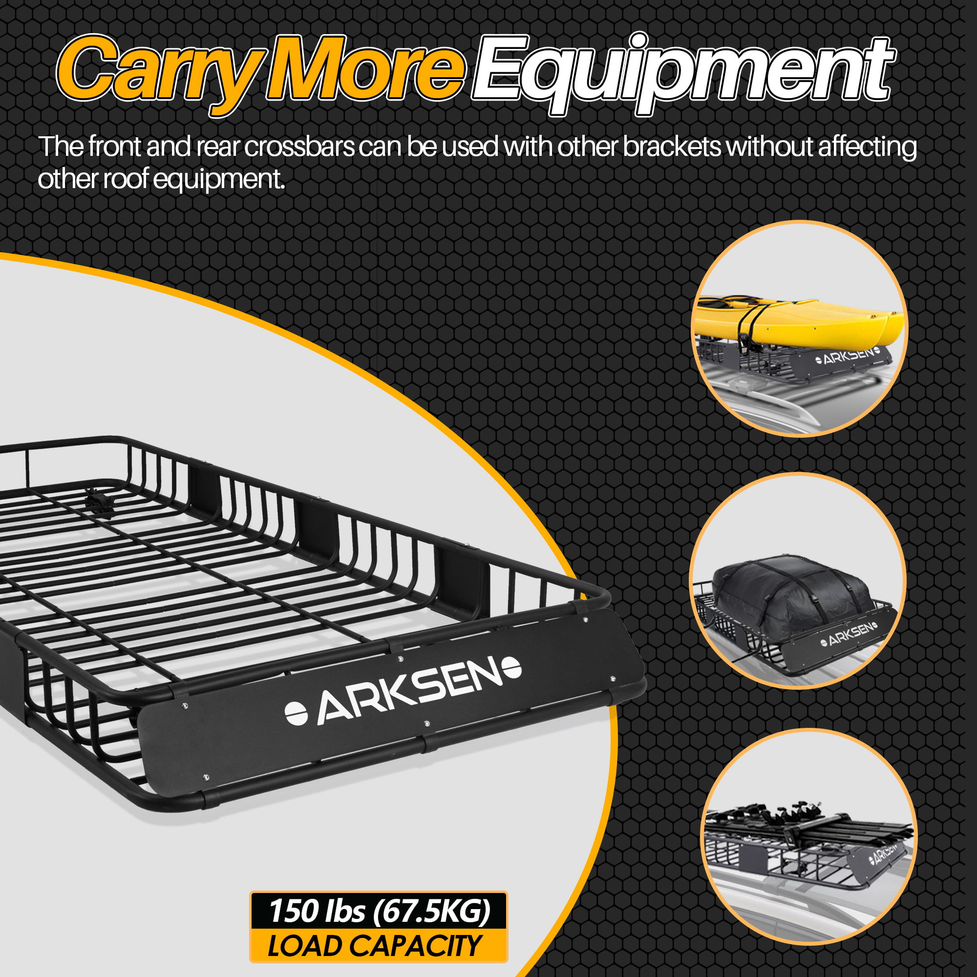 ARKSEN 84″x 39″x 6″ Universal Roof Rack Cargo Extension Car Top Luggage Holder Carrier Basket SUV Camping. Black