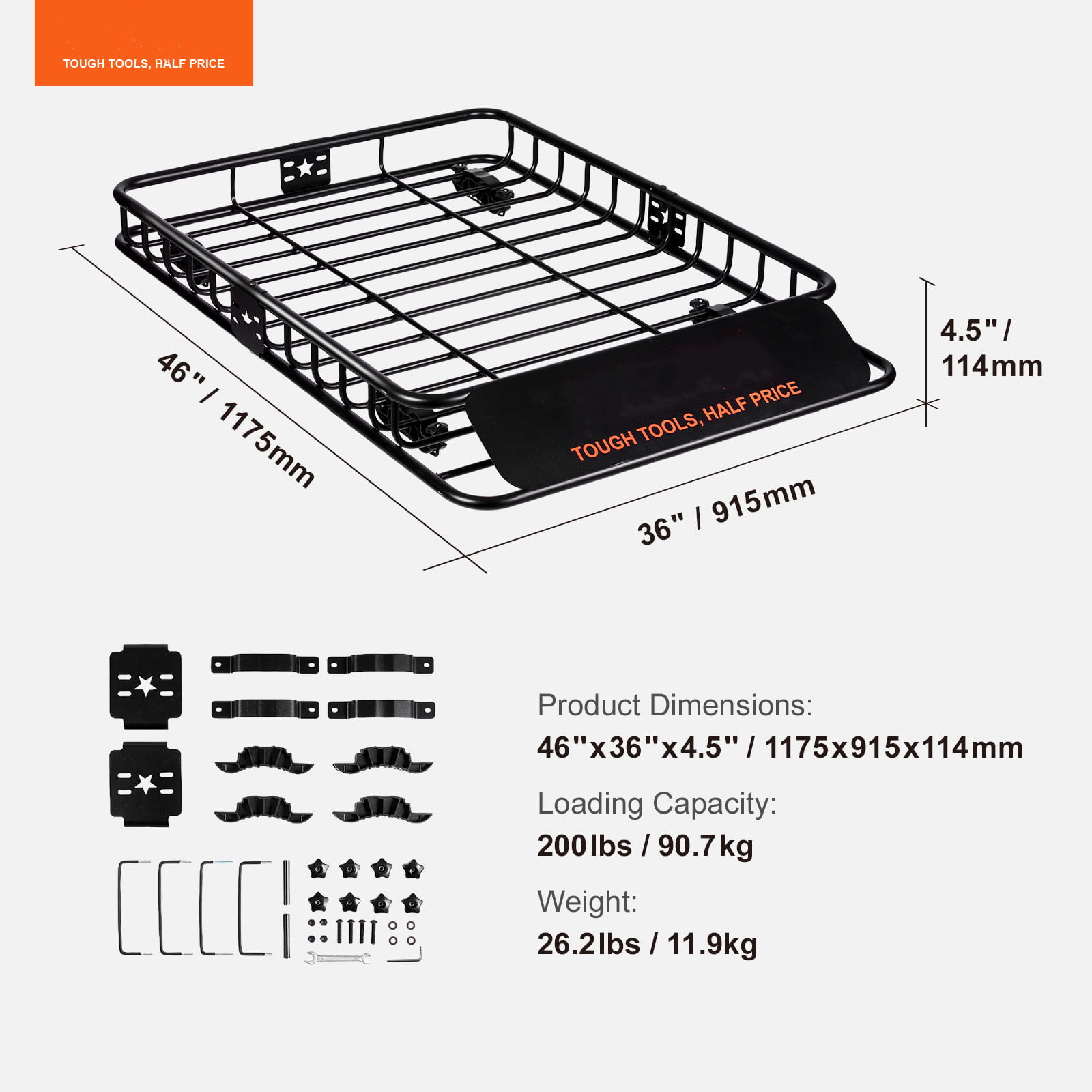 BENTISM Roof Rack Cargo Basket 200 LBS Capacity 46″x36″x4.5″ Heavy Duty Car Top Holder for SUV Truck