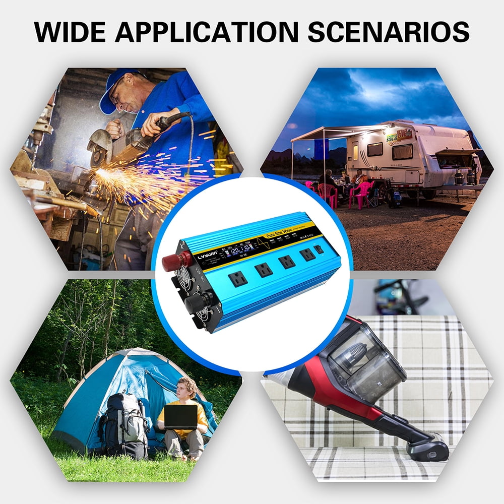 LVYUAN 3000 Watts Pure Sine Wave Power Inverter DC 12V to AC 110V 120V Converter 4USB 4AC LCD Remote Control