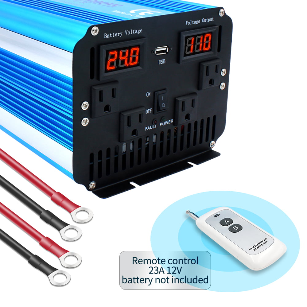 LVYUAN 4000 Watts Pure Sine Wave Power Inverter DC 24V to AC 110V 120V Truck Converter With Remote Control / LED Display / USB