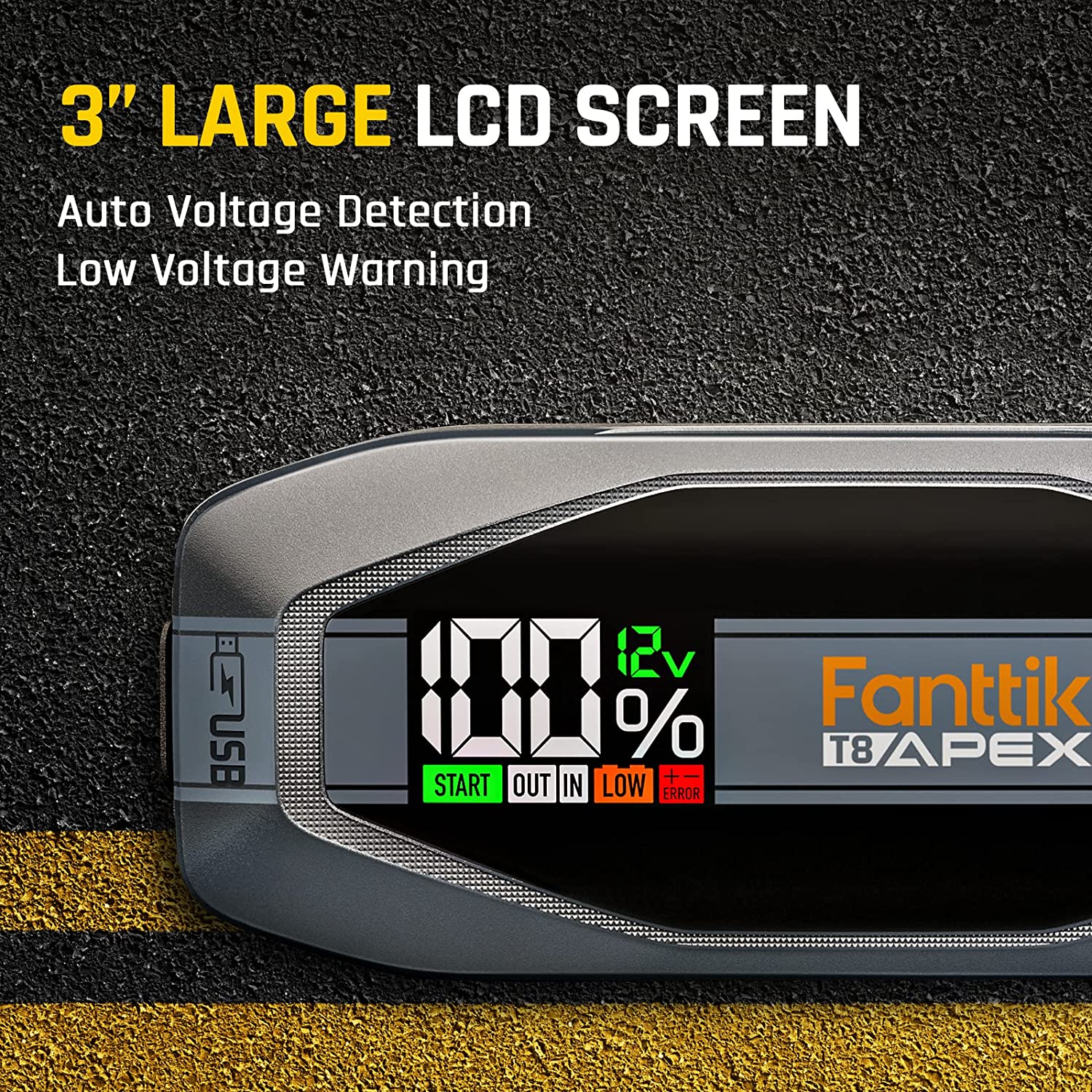 Fanttik T8 APEX 2000 Amp Jump Starter. 65W Two-Way Fast Charging. for Up to 8.5L Gas and 6L Diesel Engines (65W Charger Included)