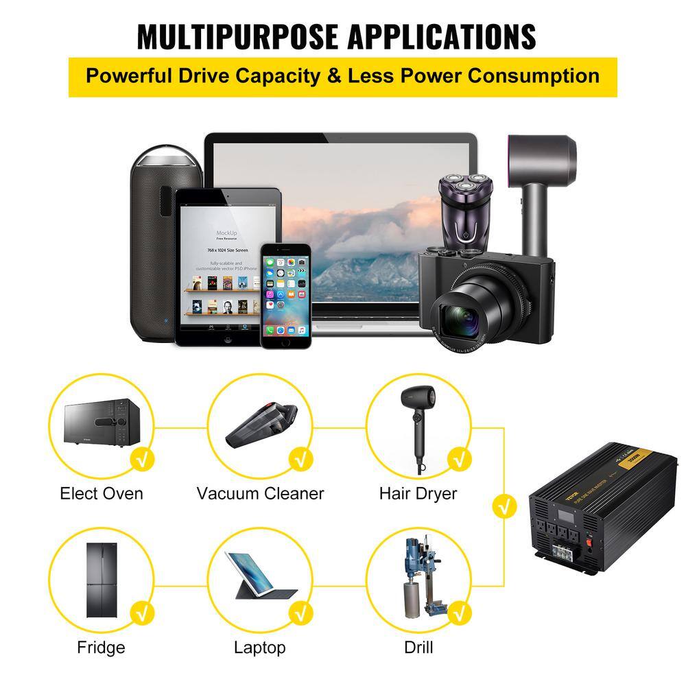 VEVOR CZXNBQDMKWKDDWIZZV9 5000-Watt DC 12V to AC 120V Pure Sine Wave Inverter Car Converter w/ LCD Display USB Port Remote Controller for Car RV