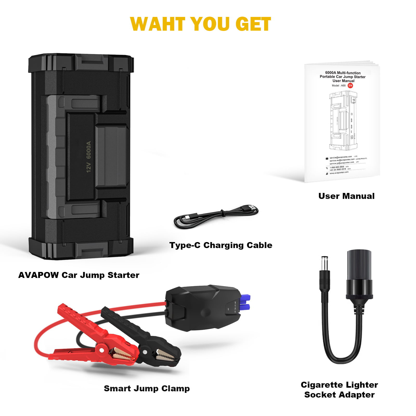 AVAPOW 6000A Car Battery Jump Starter (for All Gas or Upto 12L Diesel) Powerful Car Jump Starter with Dual USB Quick Charge and DC Output.12V Jump Pack with Built-in LED Bright Light
