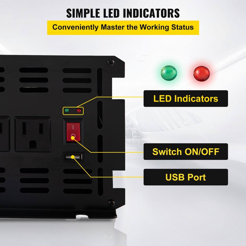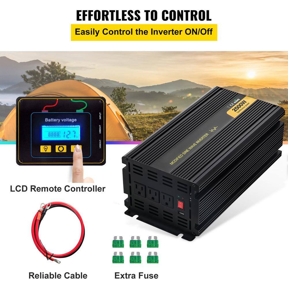 VEVOR ZXN2K5-24-120I14HV9 2500-Watt DC 24-Volt Power Inverter Modified Sine Wave Inverter with LCD Remote Controller LED Indicator for Truck RV
