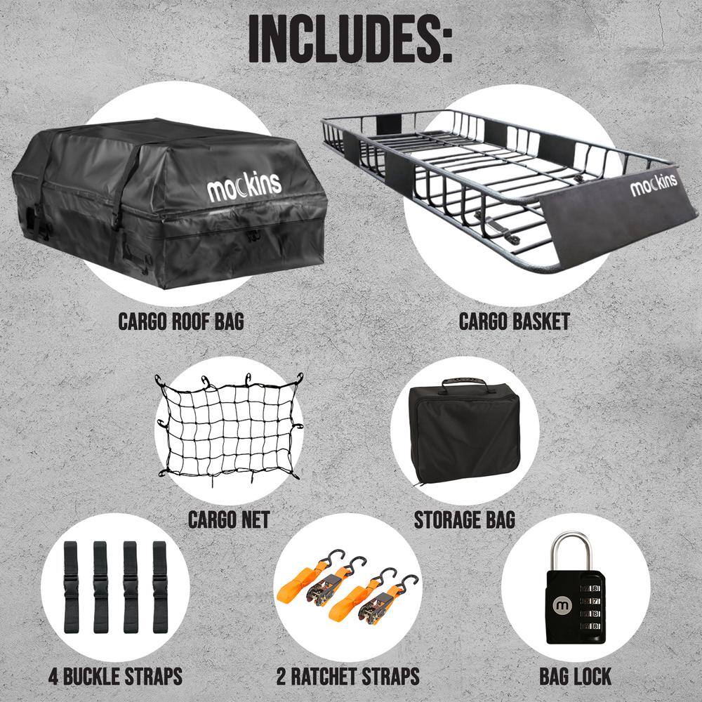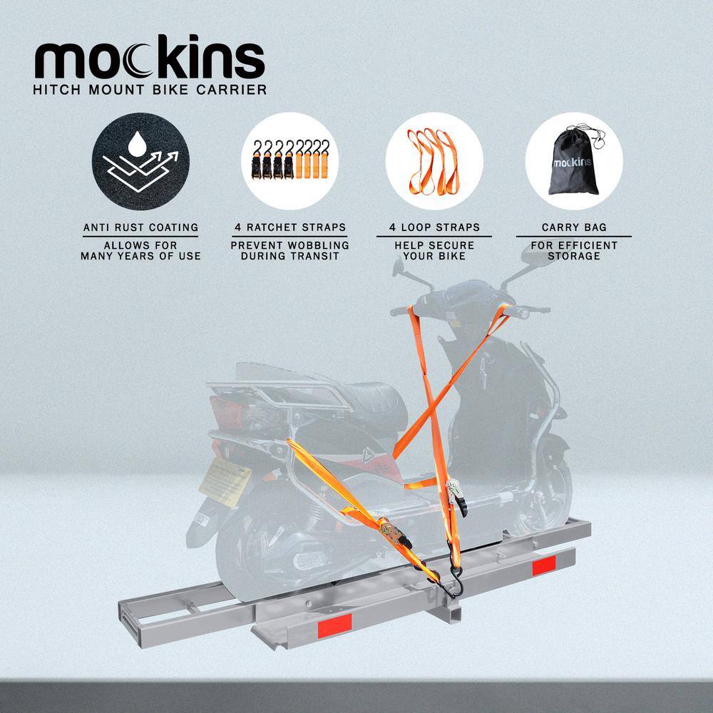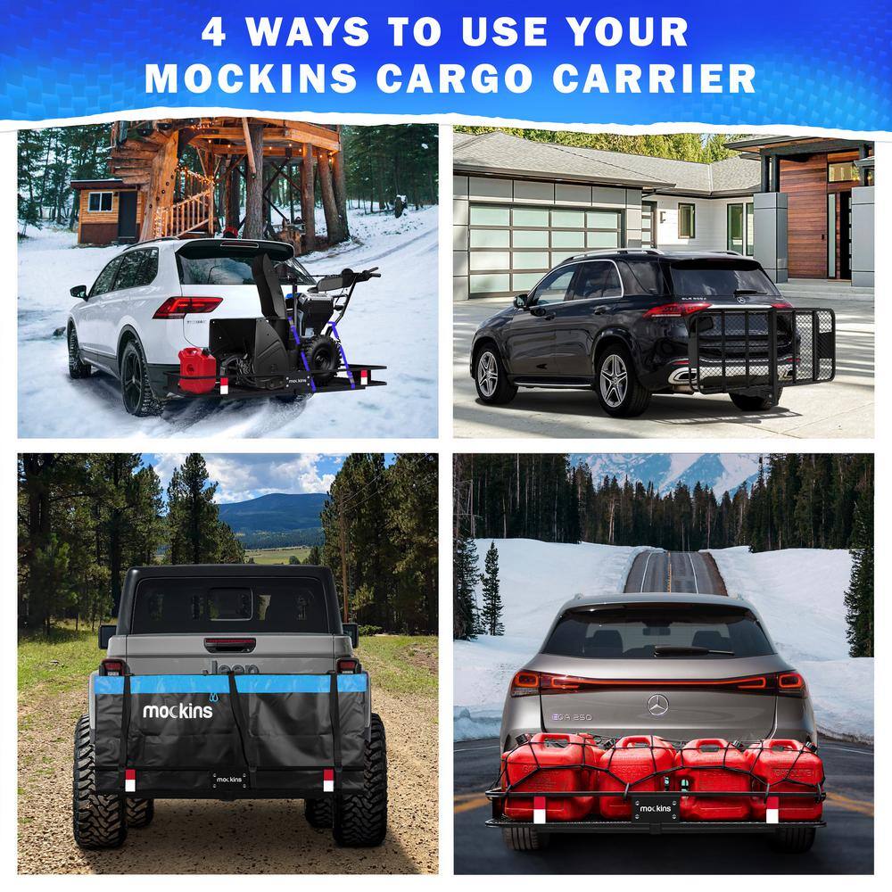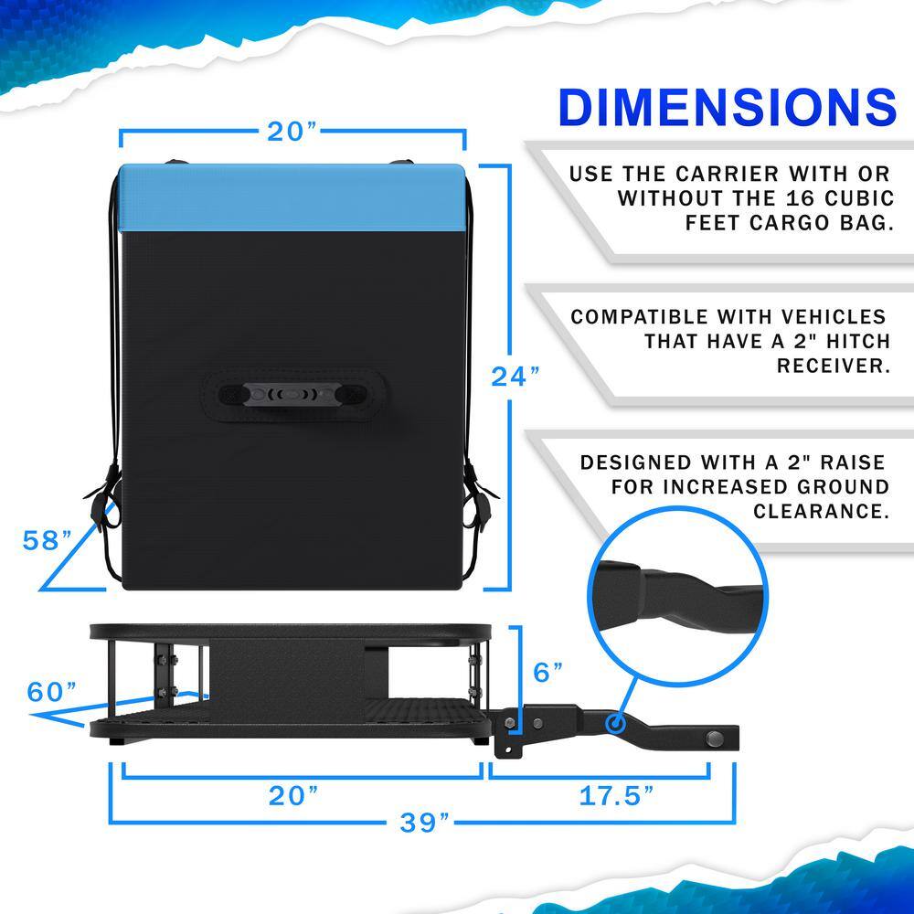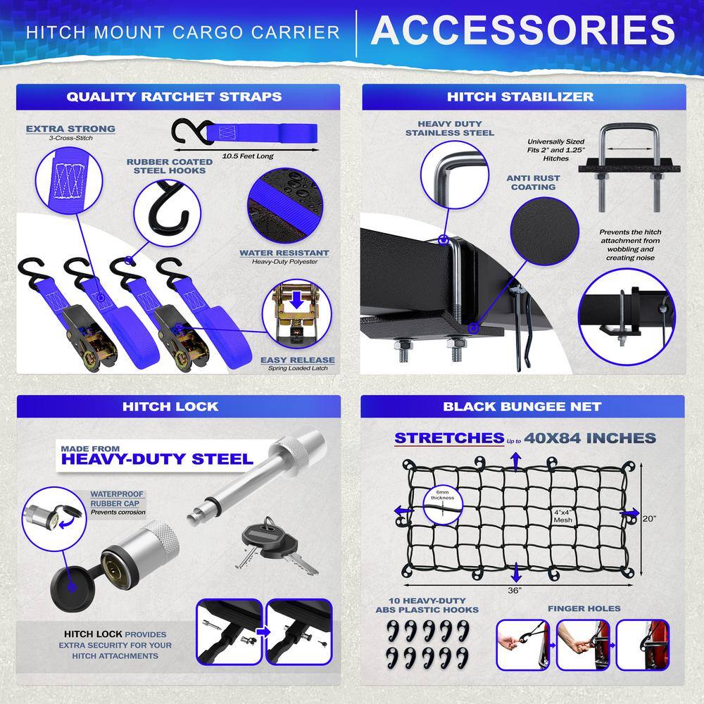 Mockins NA-26 500 lbs. Capacity Hitch Mount Cargo Carrier Set with Folding Shank and 2 in. Raise. Cargo Bag. Net. Straps. Locks - Blue