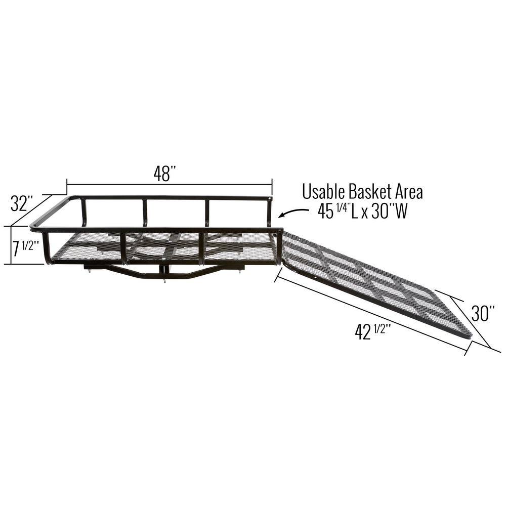 CURT 18153 500 lb. Capacity 60 in. x 24 in. Black Steel Basket Hitch Cargo Carrier (Folding 2 in. Shank)