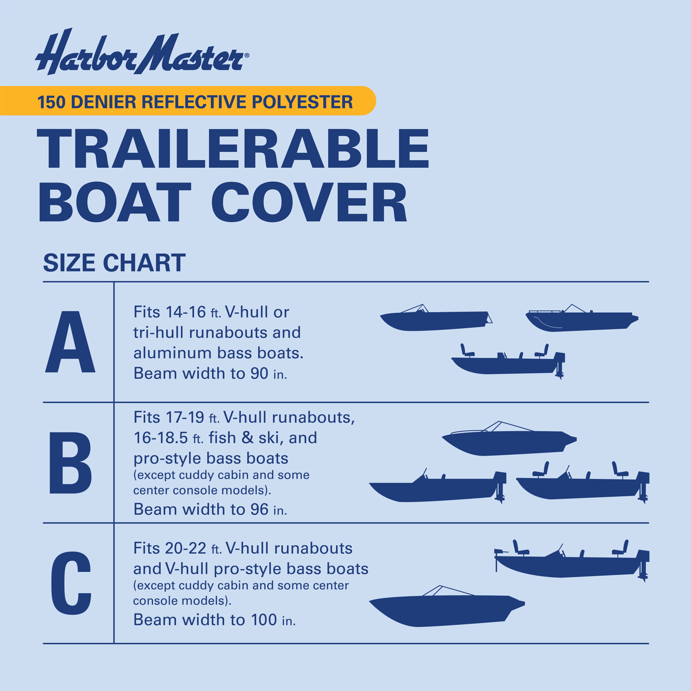 Harbor Master 150-Denier Polyester Water-Resistant Boat Cover. Silver. Model A