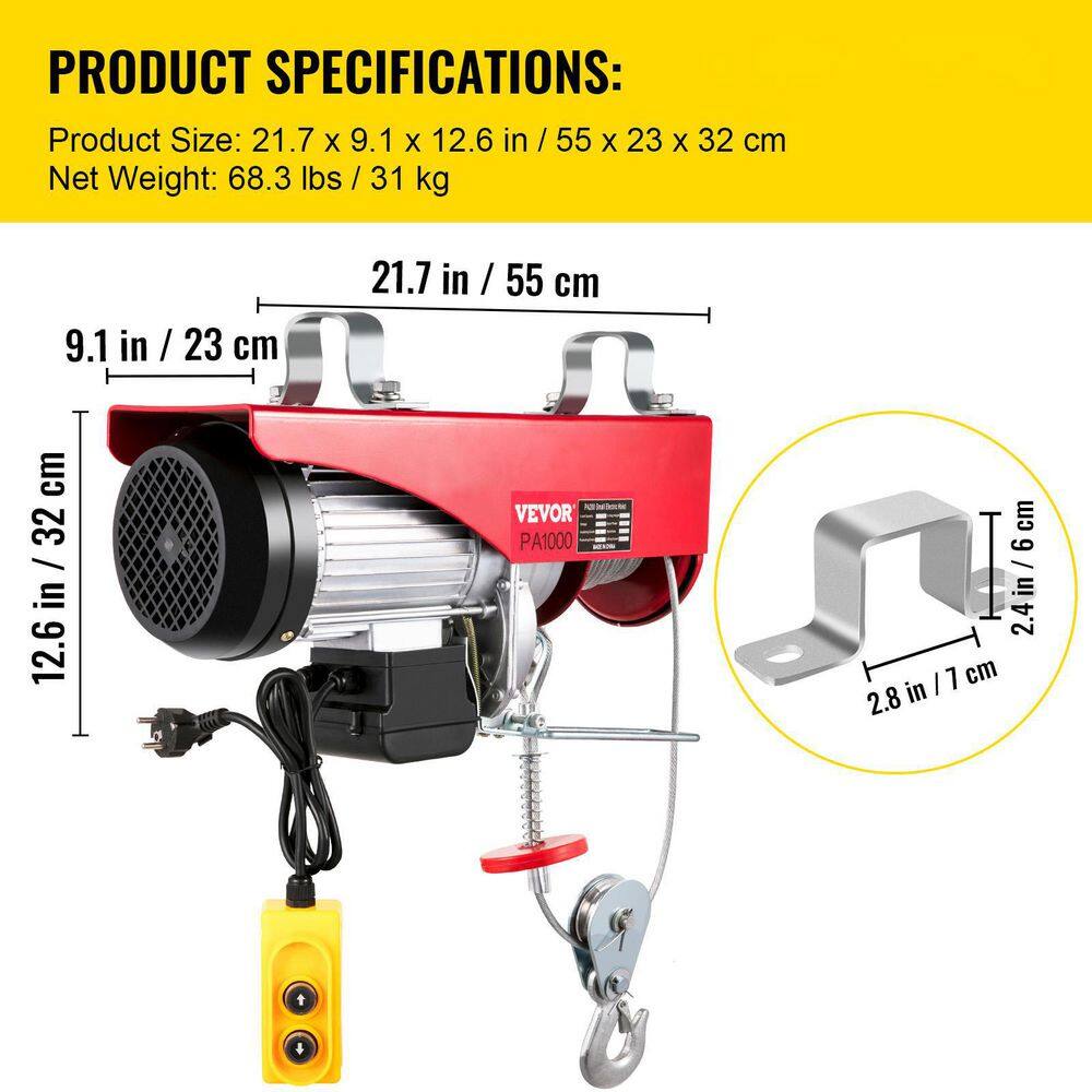 VEVOR DDHL500KGTSLDGJ01V1 Electric Hoist Winch 1102 lbs. Electric Hoist w/ wireless remote control for Lifting Machinery Industry