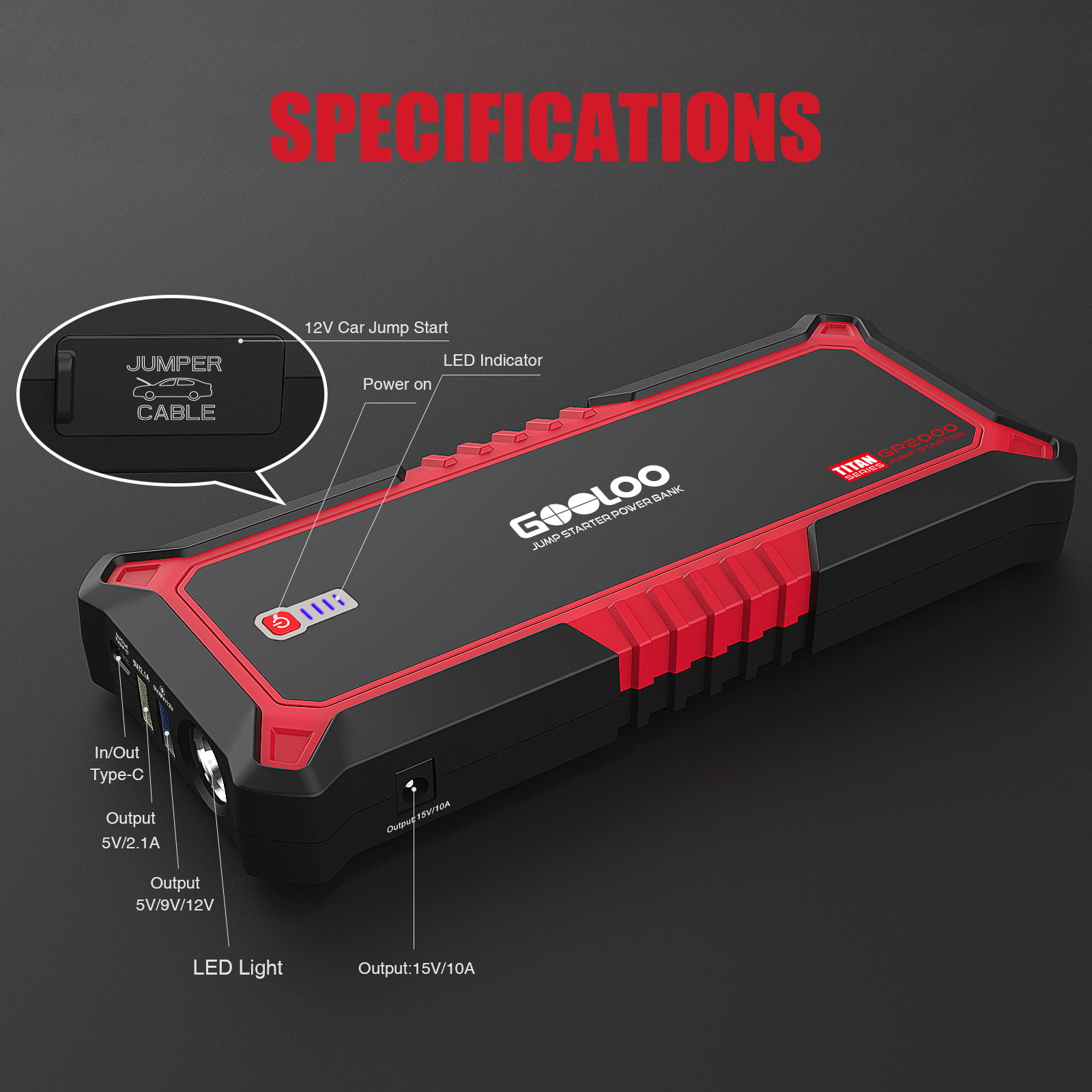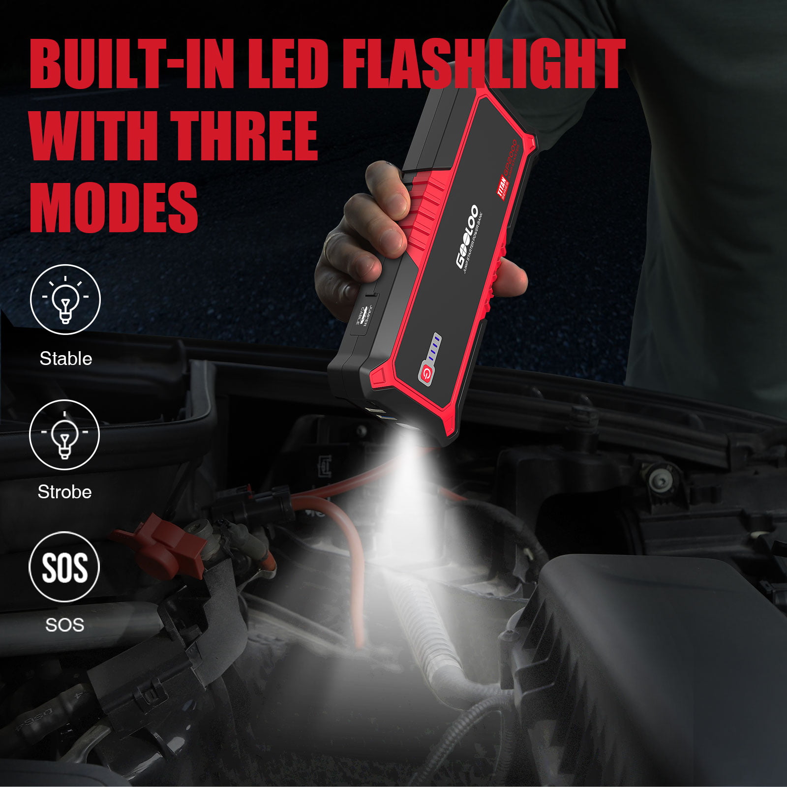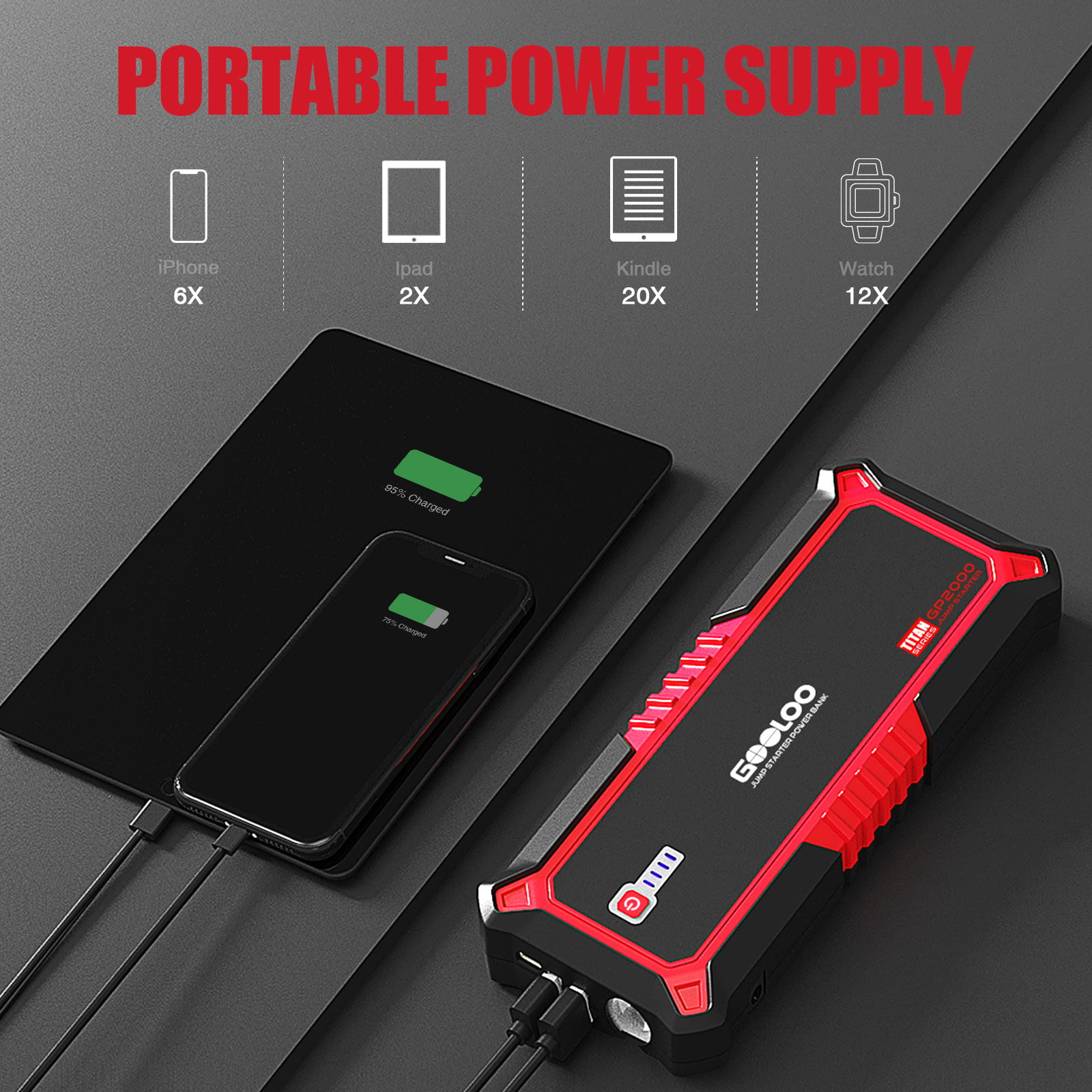 GOOLOO Car Jump Starter 2000A Peak 19800mAh 12V Up to 9L Gas or 7L Diesel Engine.Portable SuperSafe Battery Booster Pack with USB Quick Charge